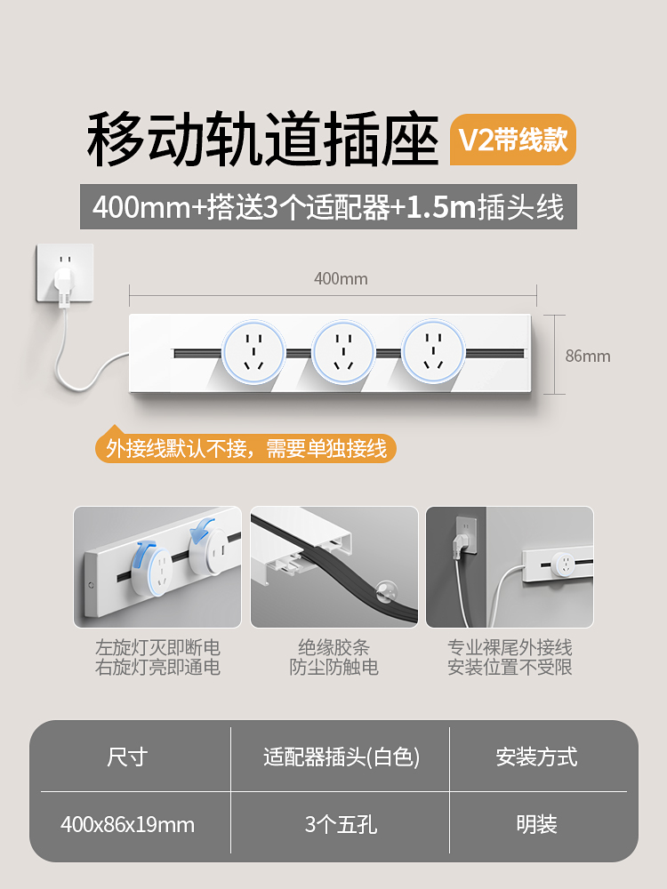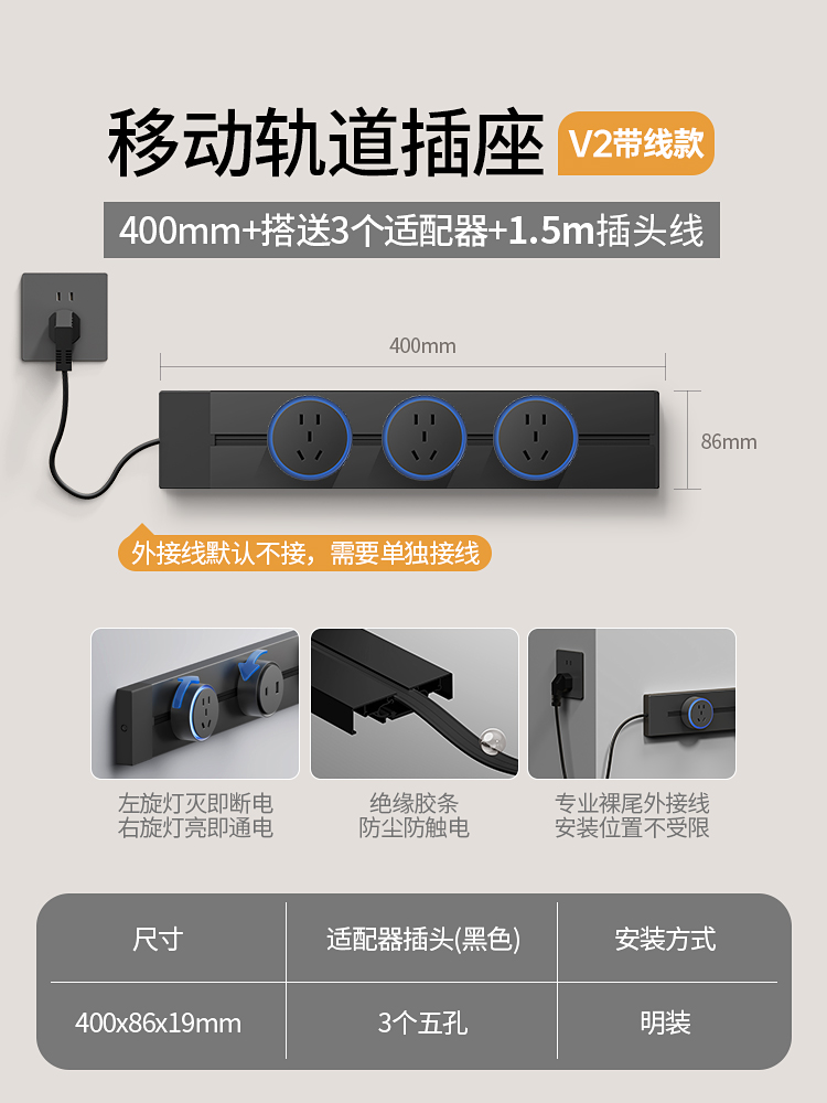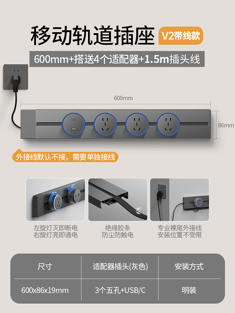 이동식 트랙 소켓 배선 보드 콘센트 홈 다이닝 사이드 캐비닛 주방 레일 슬라이딩 콘센트 케이블 포함