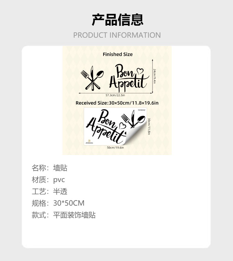 ZN3942Q 칼, 포크 및 스푼 간단한 식기 활 영어 자체 접착 벽 스티커 주방 홈 장식 벽 스티커스토어 가기