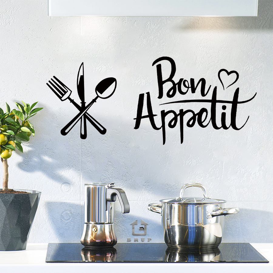 ZN3942Q 칼, 포크 및 스푼 간단한 식기 활 영어 자체 접착 벽 스티커 주방 홈 장식 벽 스티커