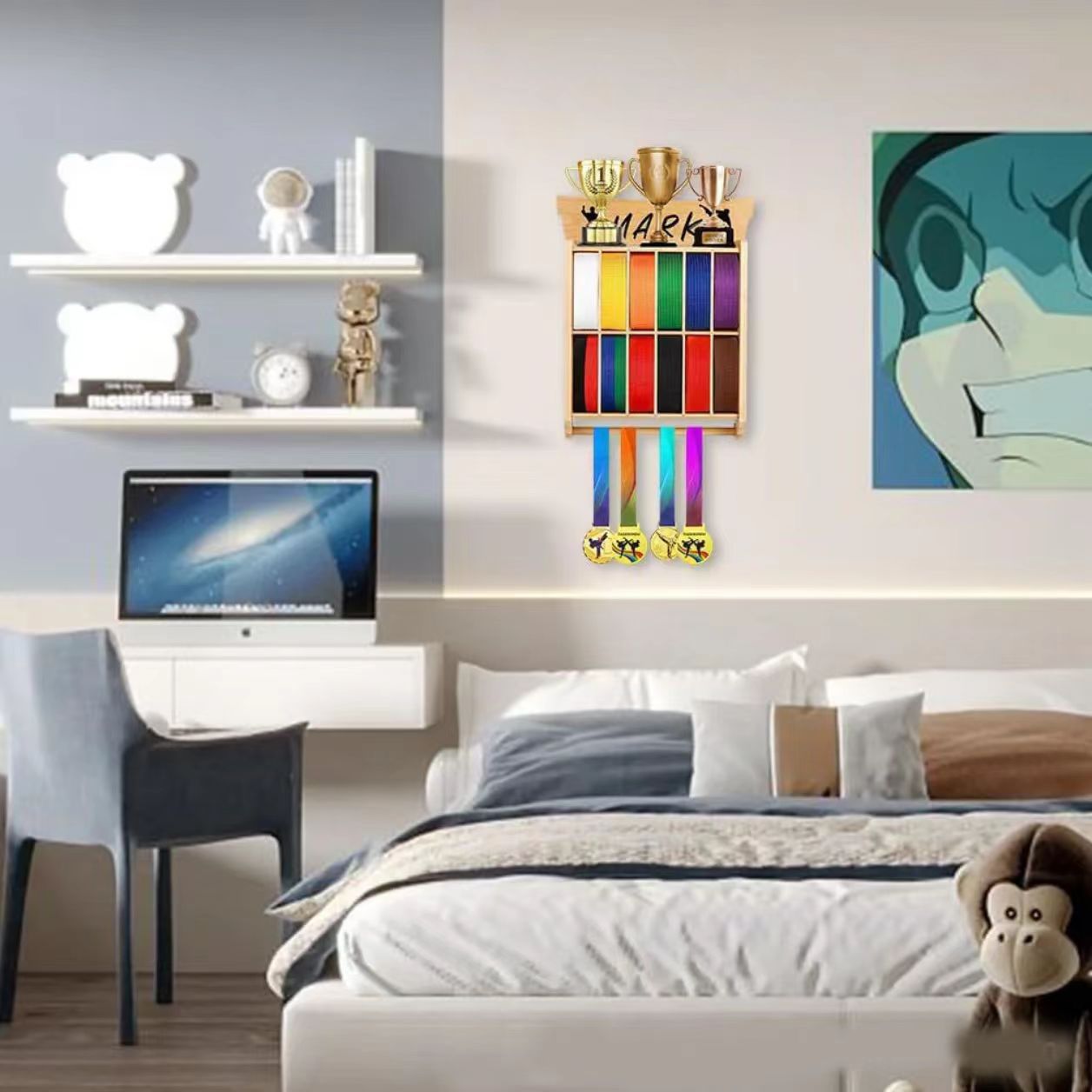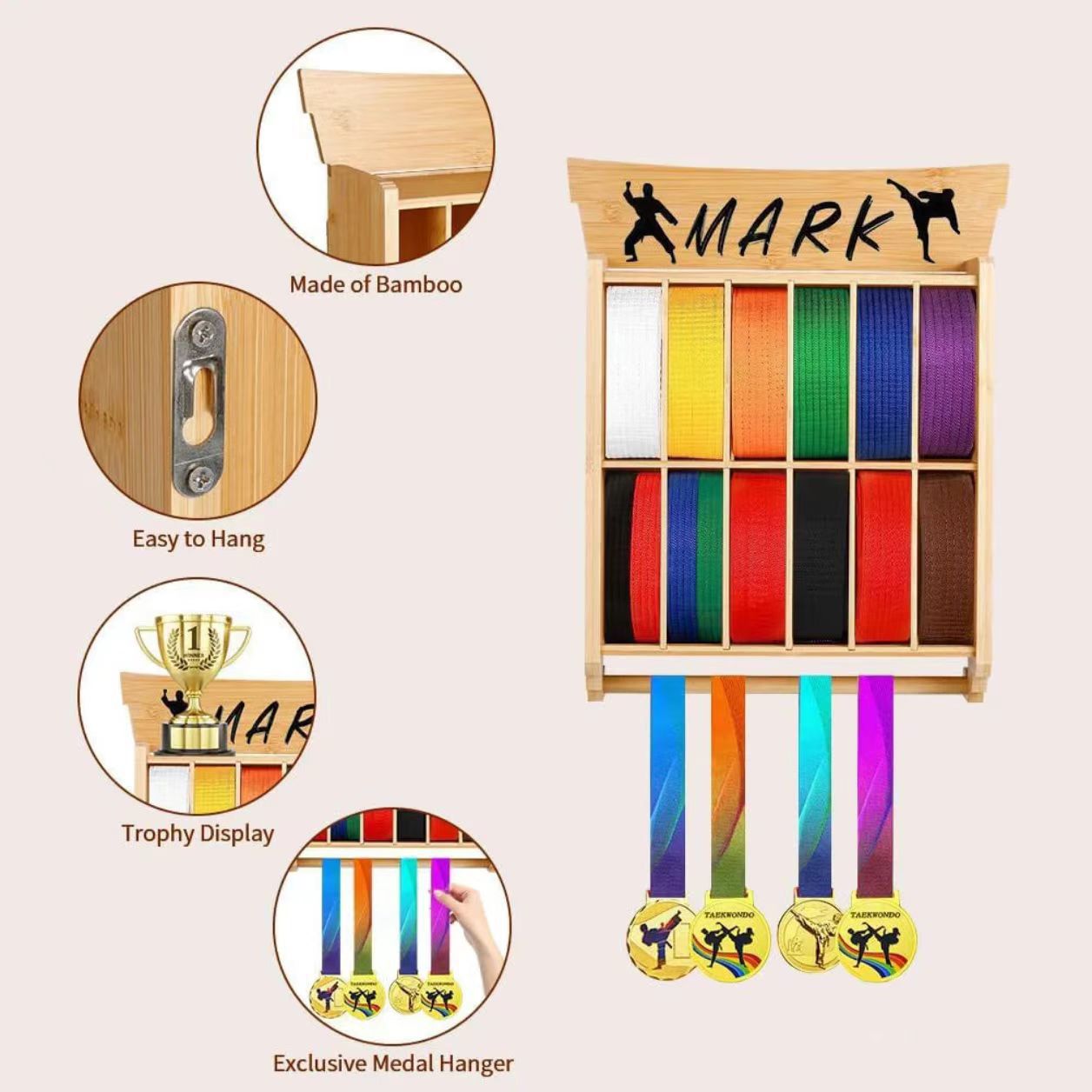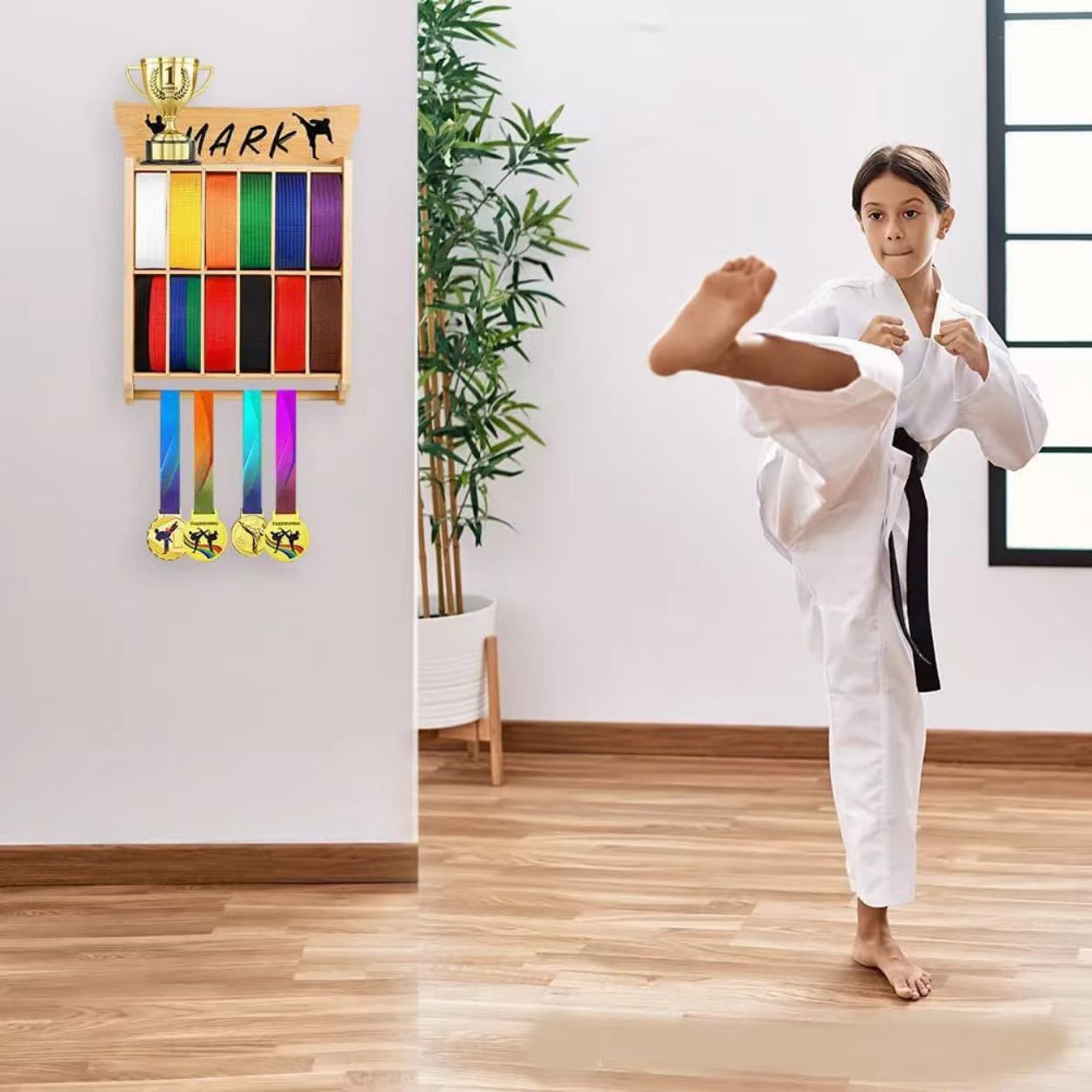 국경 간 목재 가라테 보관 랙 벽걸이 형 태권도 벨트 보관 랙 다층 챔피언십 메달 보관 랙