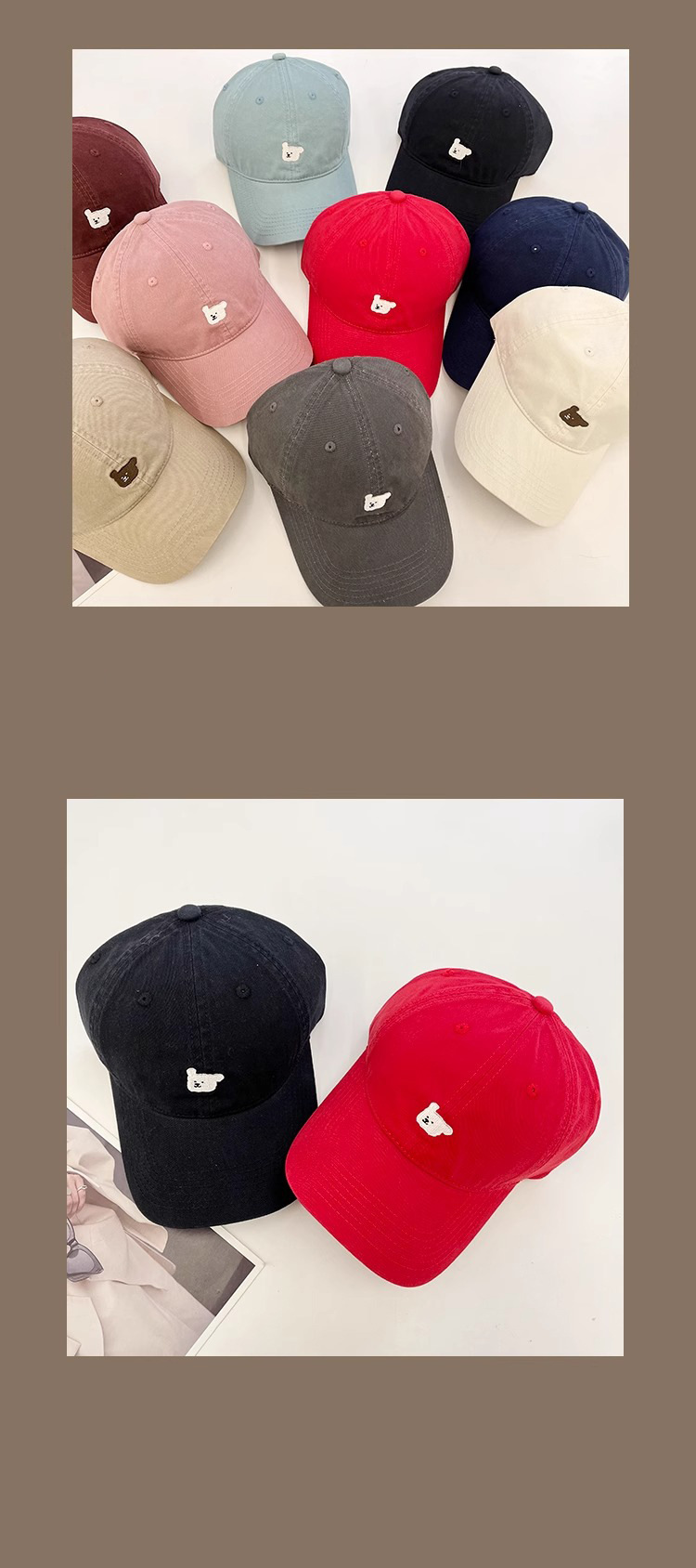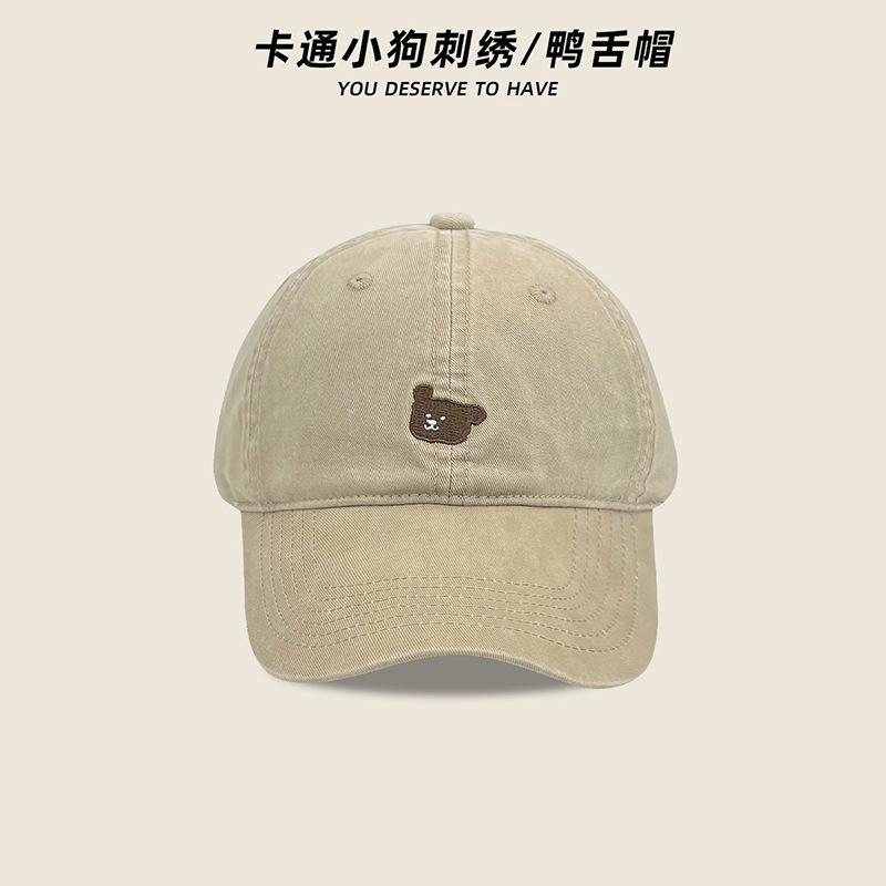 여성용 일본 만화 강아지 자수 야구 모자, 한국식 얼굴이 보이는 작은 커플 피크 캡, 남성용 챙이 넓은 다용도 모자스토어 가기