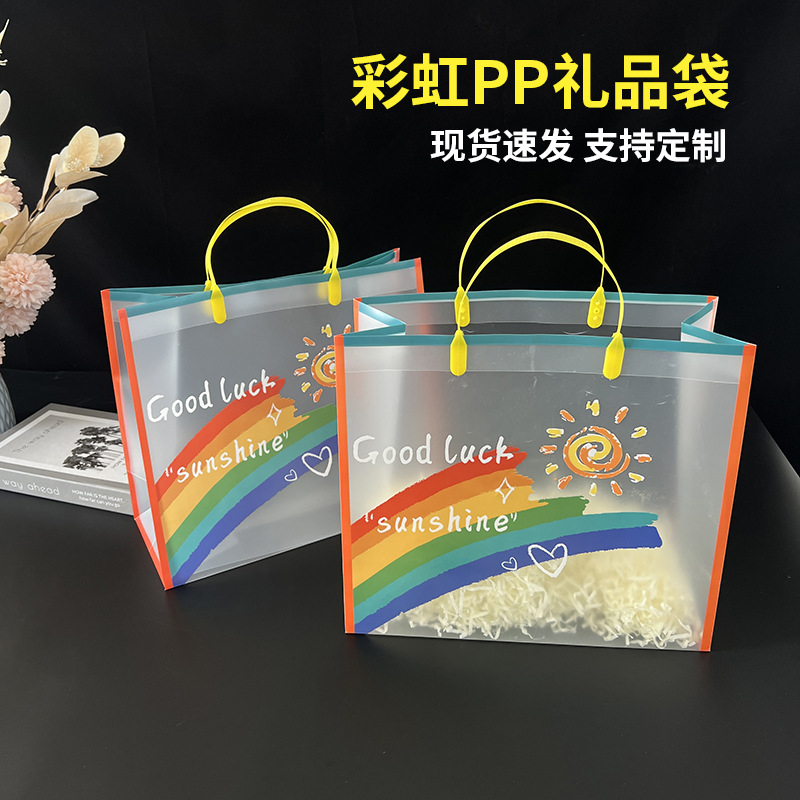 레인보우 PP 투명 핸드백 어린이 귀여운 생일 선물 가방 중국어 발렌타인 데이 선물 기념품 가방은 사용자 정의를 지원합니다