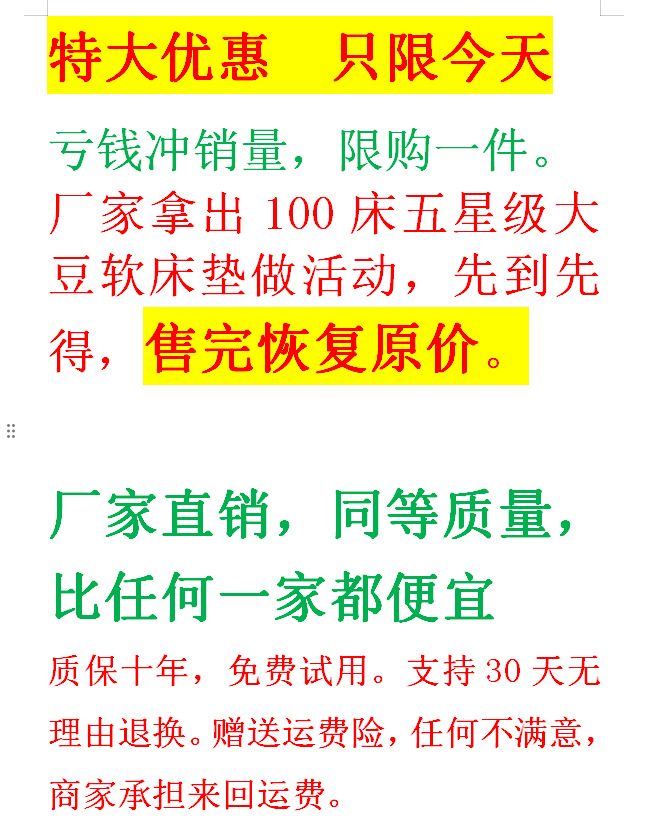 5호텔 콩섬유 매트리스 부드러운 쿠션 홈 침실 매트 침구 학생 기숙사 싱글 매트리스 J^스토어 가기