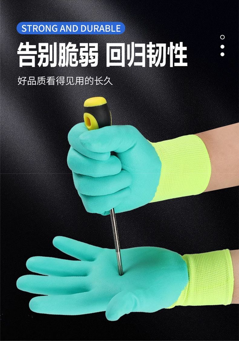 노동 보호 장갑, 내마모성, 미끄럼 방지, 통기성, 강화 손가락 13바늘 작업 보호 고무 라텍스 장갑 도매