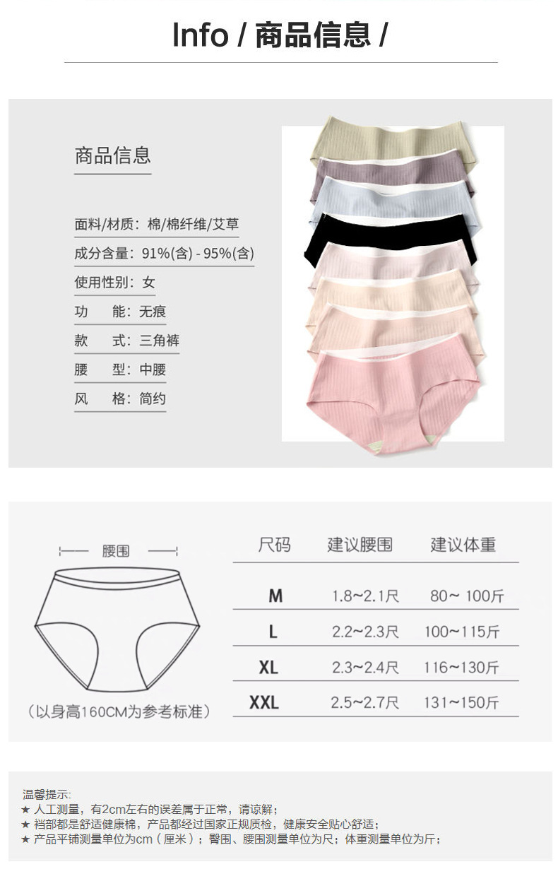 여학생을 위한 새로운 쑥 순수 순면 무봉제 중간 허리 속옷, 통기성, 편안함, 섹시함, 귀여움, 항균 가랑이스토어 가기