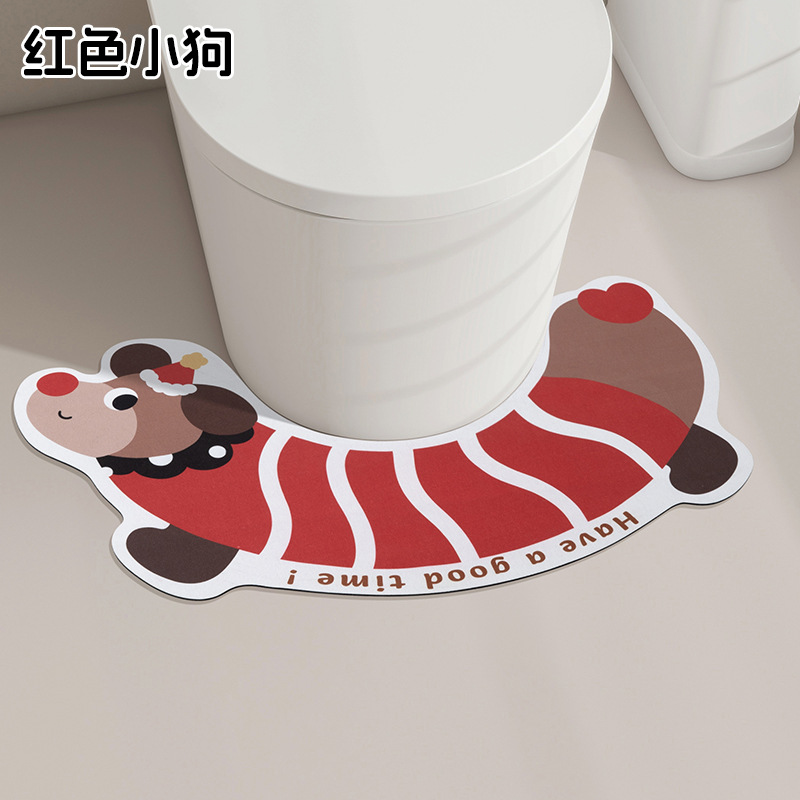 # U자형 닥스훈트 모양 변기 매트, 가정용 화장실 욕실 변기용 바닥 매트, 흡수성, 속건성, 미끄럼 방지, 내마모성 매트