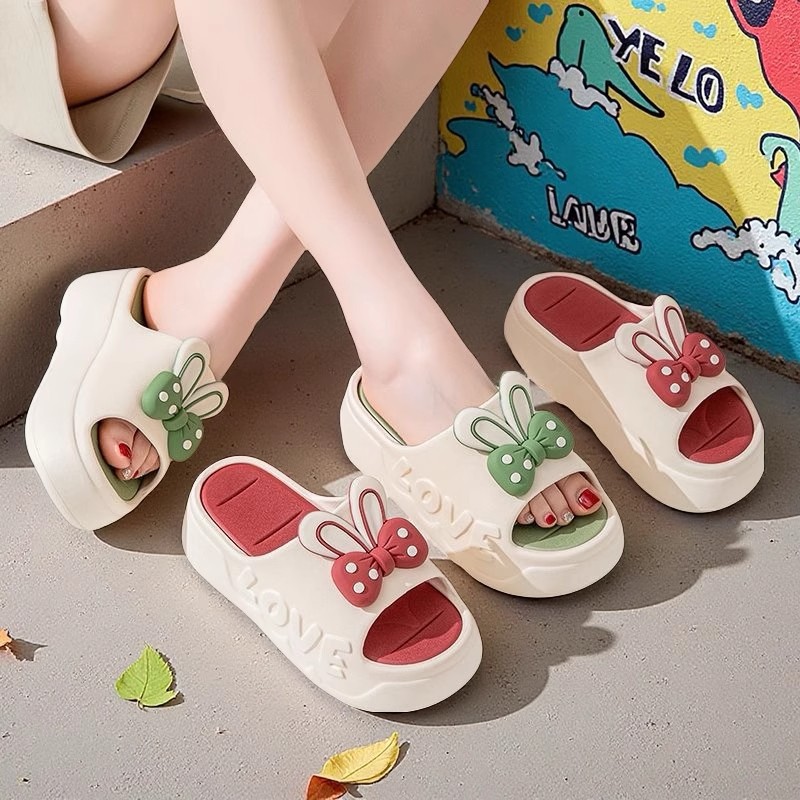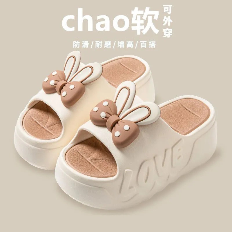 여성용 두꺼운 밑창 슬리퍼, 여름 하이힐, 실내 홈 패션, 토끼 욕실 슬리퍼, 미끄럼 방지 및 외부 착용을 위한 높이 증가스토어 가기