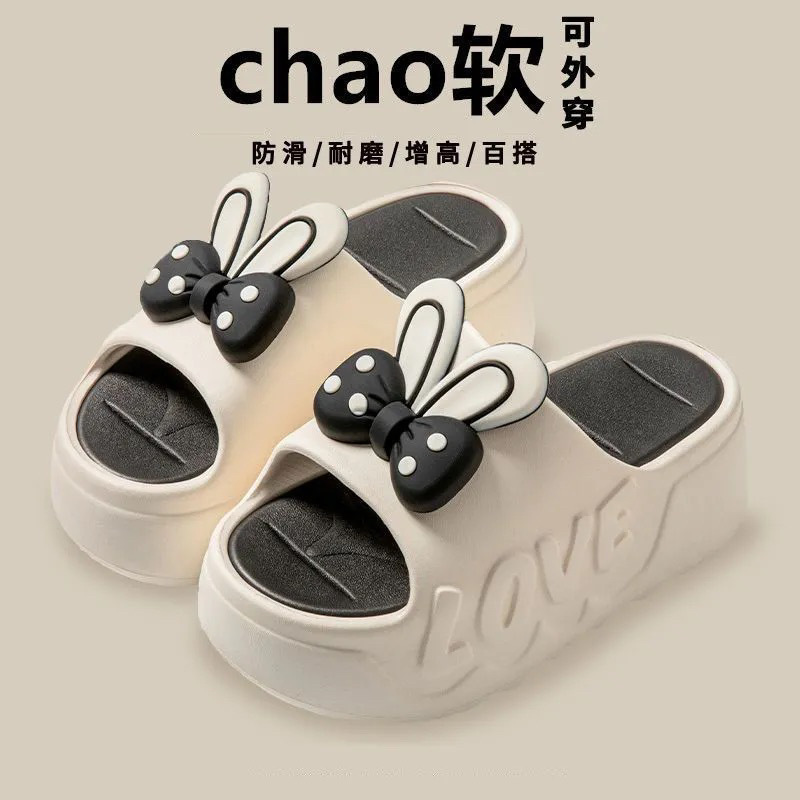 여성용 두꺼운 밑창 슬리퍼, 여름 하이힐, 실내 홈 패션, 토끼 욕실 슬리퍼, 미끄럼 방지 및 외부 착용을 위한 높이 증가