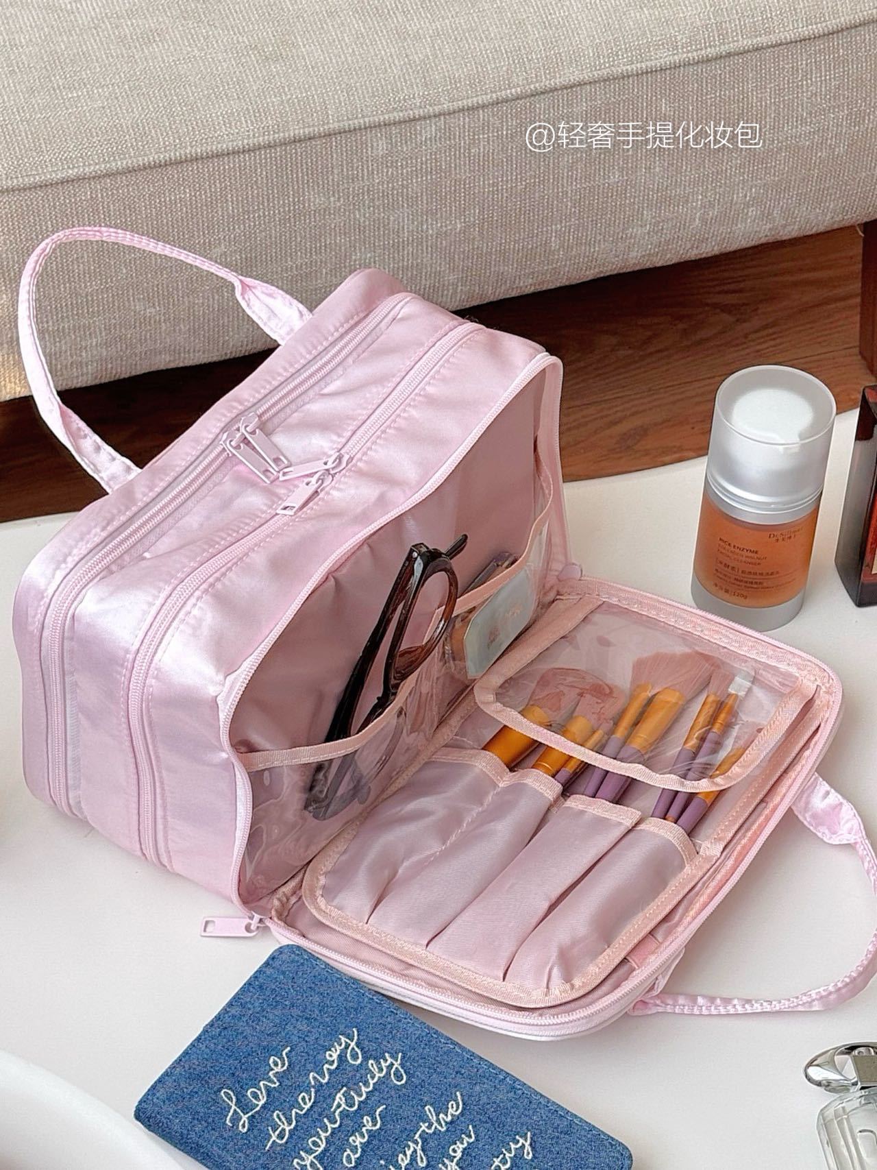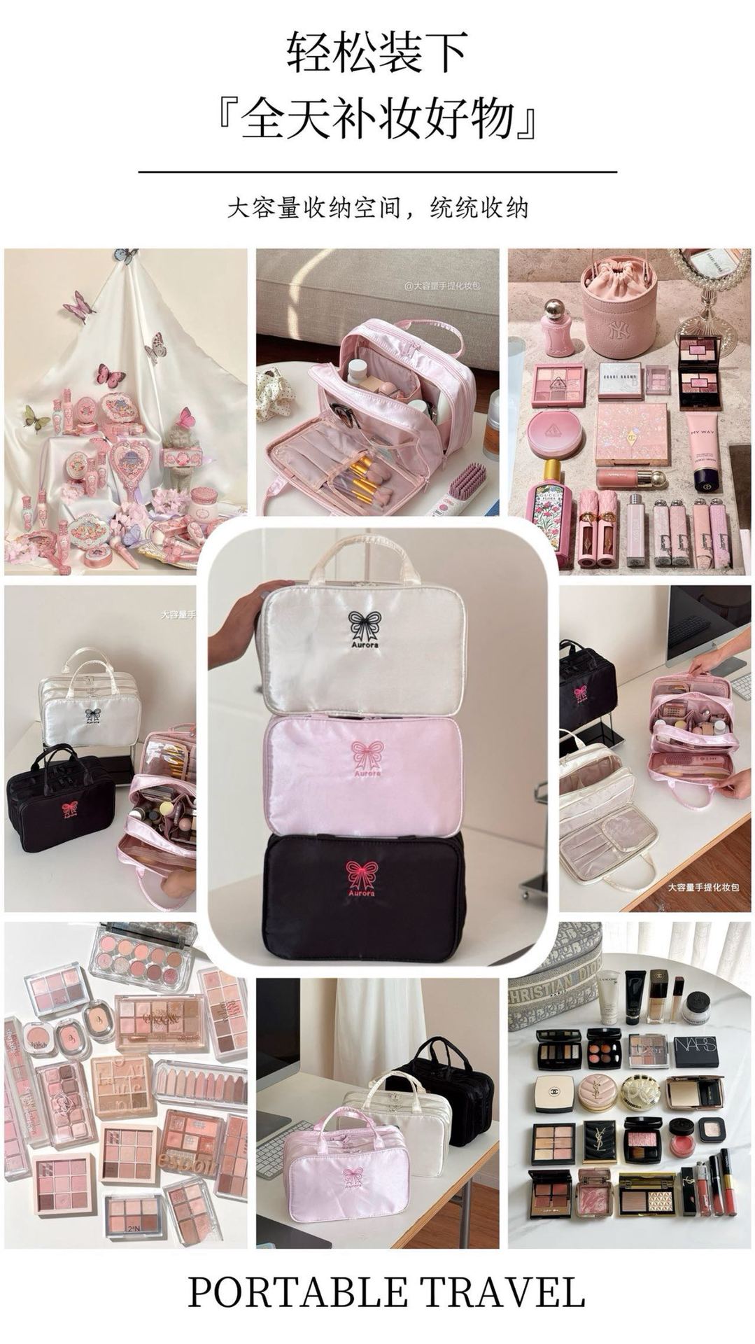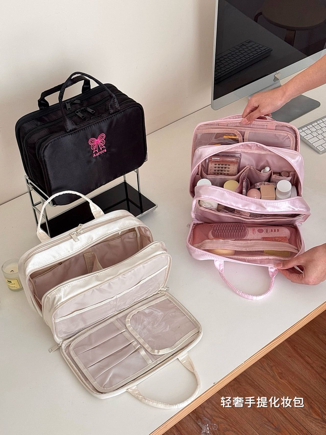 귀여운 만화 잘 생긴 소녀의 3층 화장품 가방, 대용량, 휴대 가능, 다용도, 휴대 가능, 경량, 도매스토어 가기