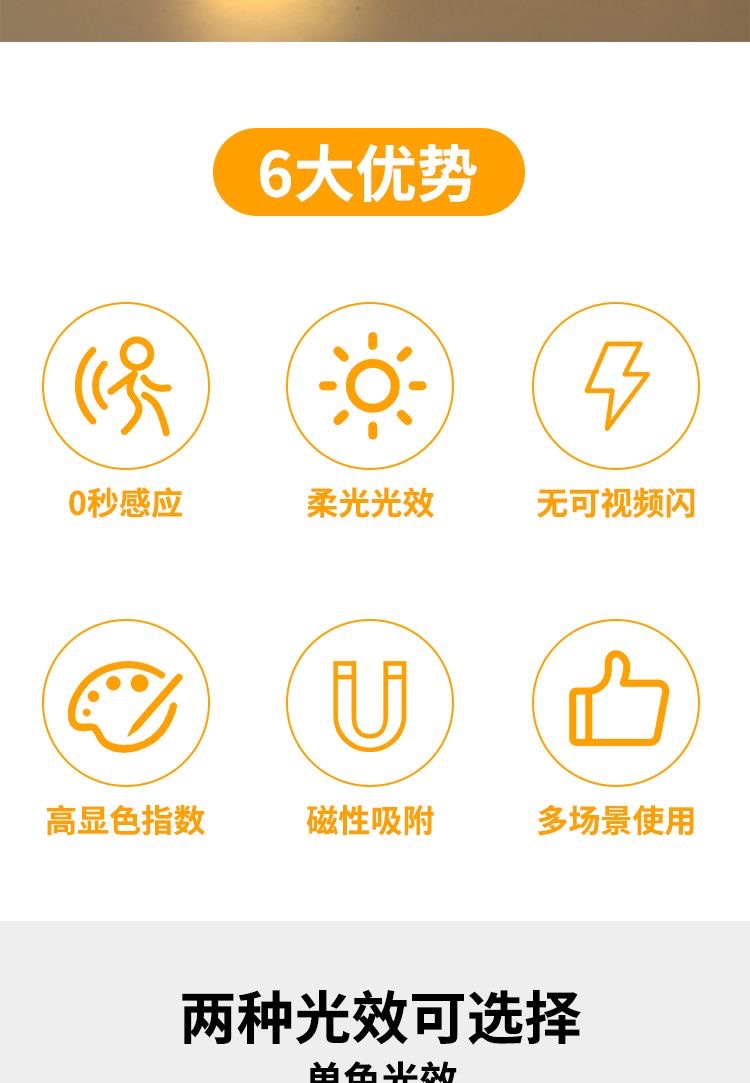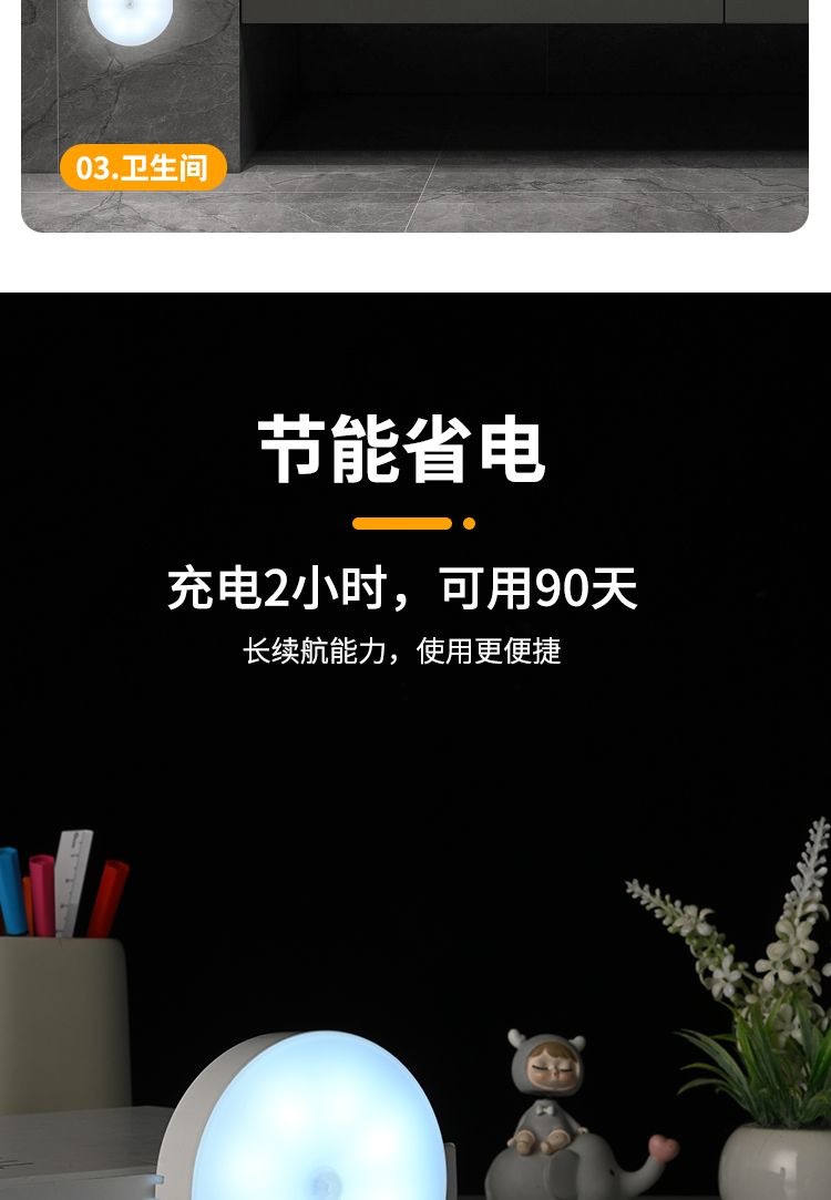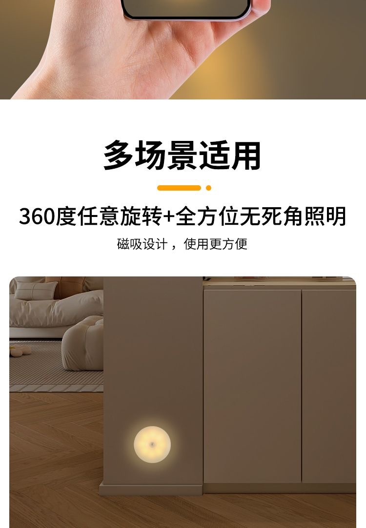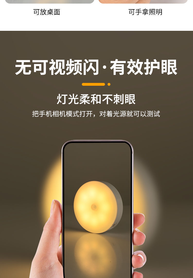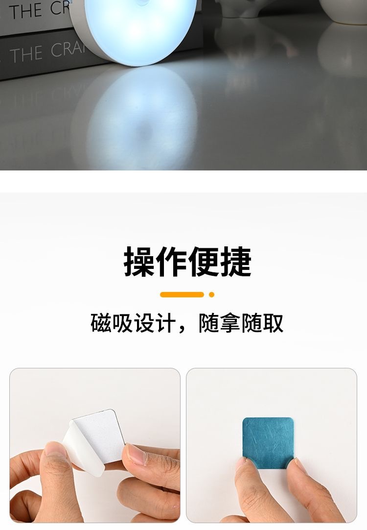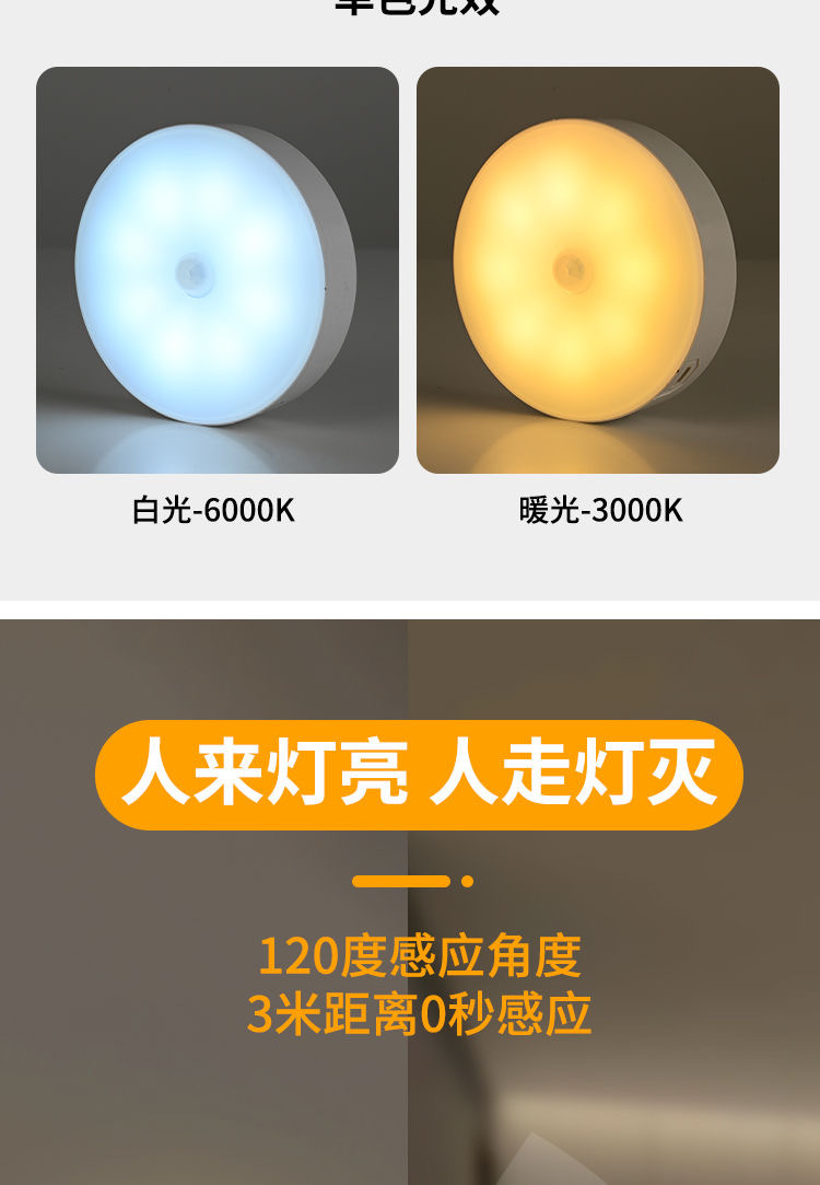 초박형 자기 유도등, 충전식 조명 제어 옷장 조명, 펀치 없는 설치, 매우 긴 배터리 수명의 계단 발 조명