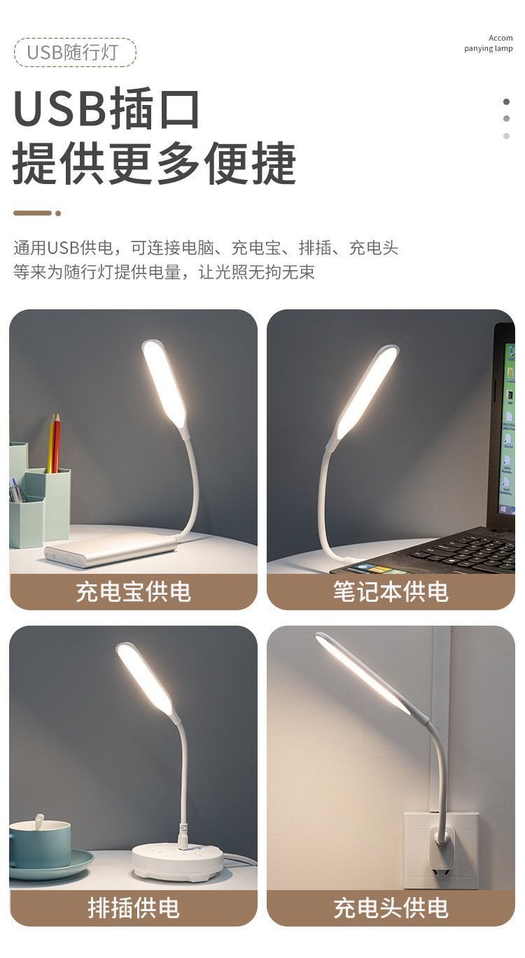 LED 터치 디밍 독서 책상 램프 USB 야간 조명 보조베터리 따뜻한 노란색 빛 침대 옆 학생 기숙사 책상 램프 체인스토어 가기