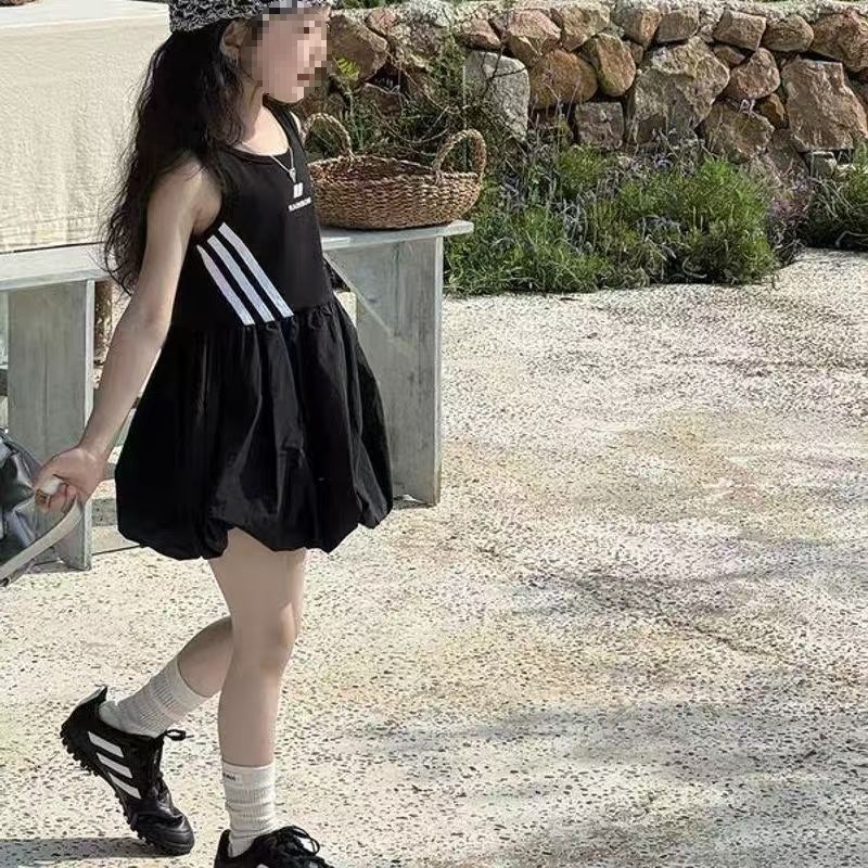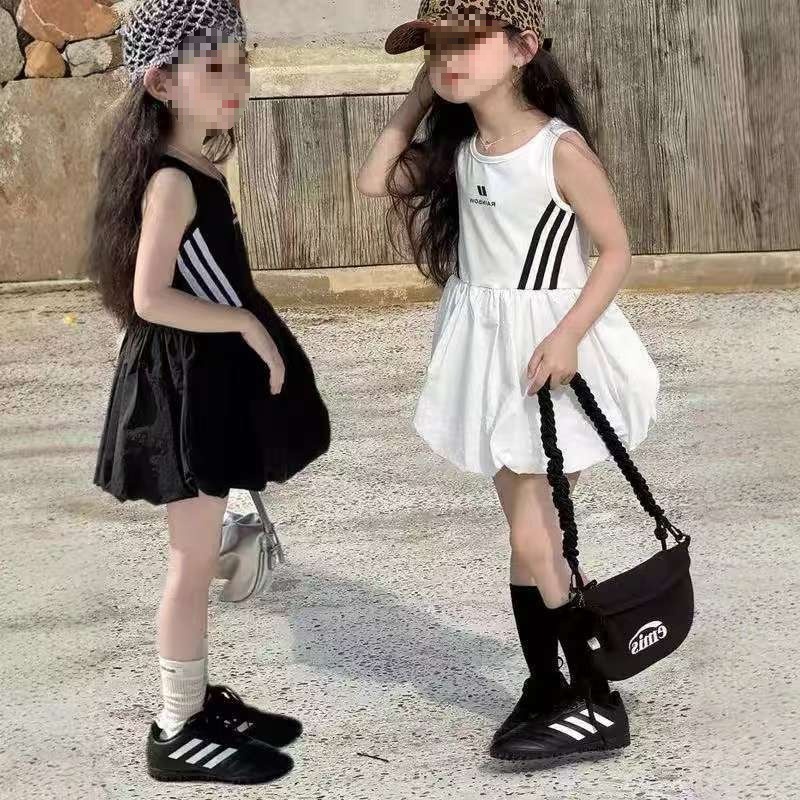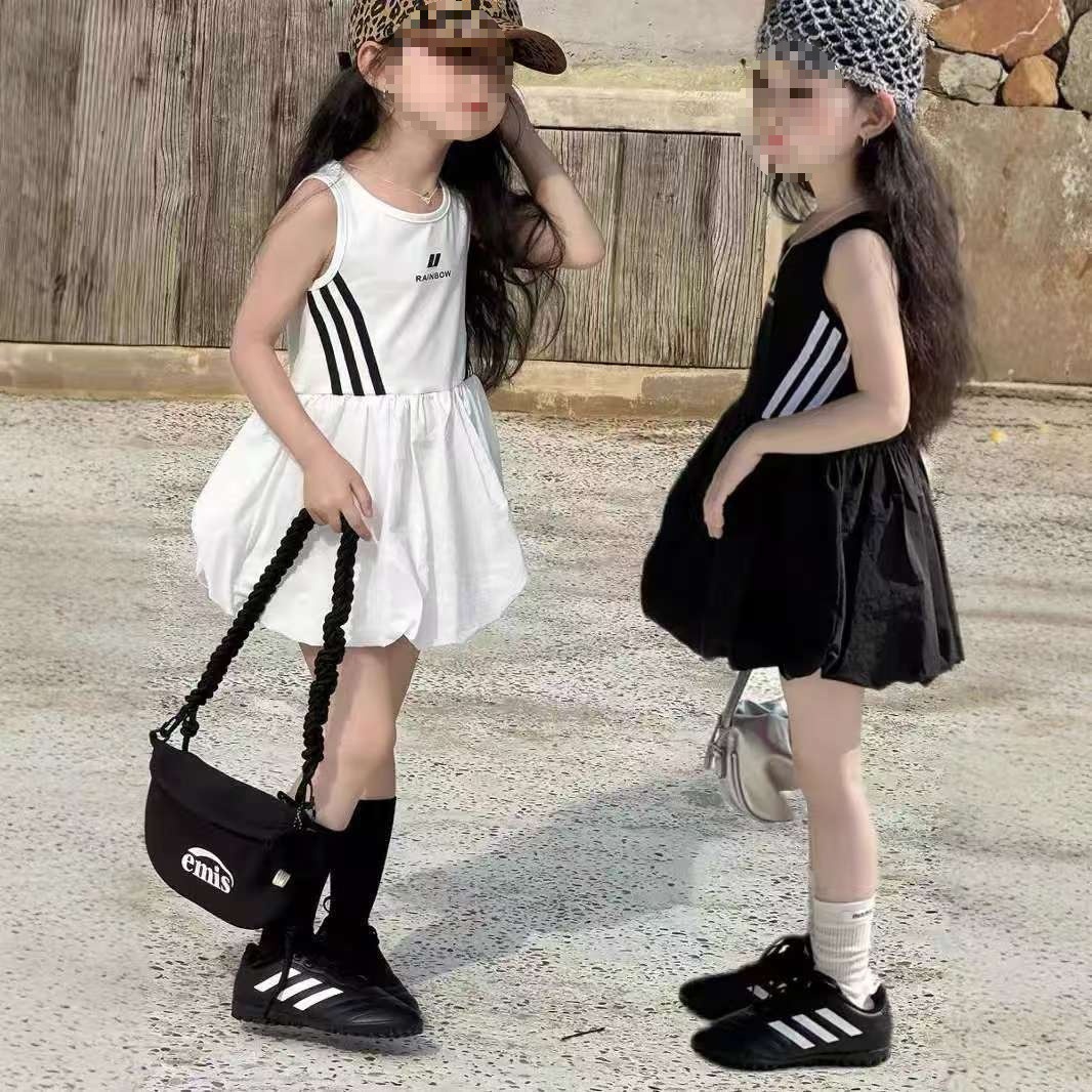 여자 한국 스타일 스포츠 스타일 캐주얼 민소매 드레스 여름 어린이 웨빙 꽃 버드 퍼프 스커트 0120A084스토어 가기