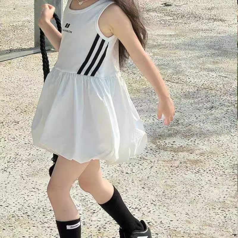 여자 한국 스타일 스포츠 스타일 캐주얼 민소매 드레스 여름 어린이 웨빙 꽃 버드 퍼프 스커트 0120A084