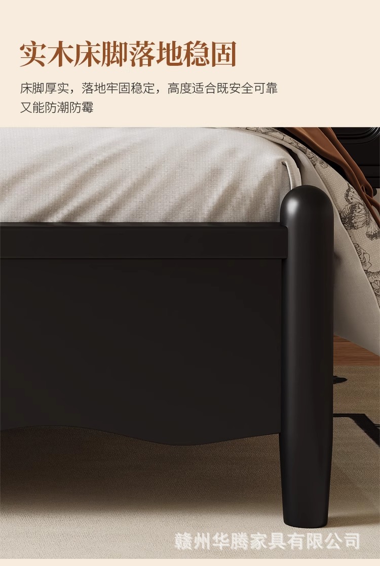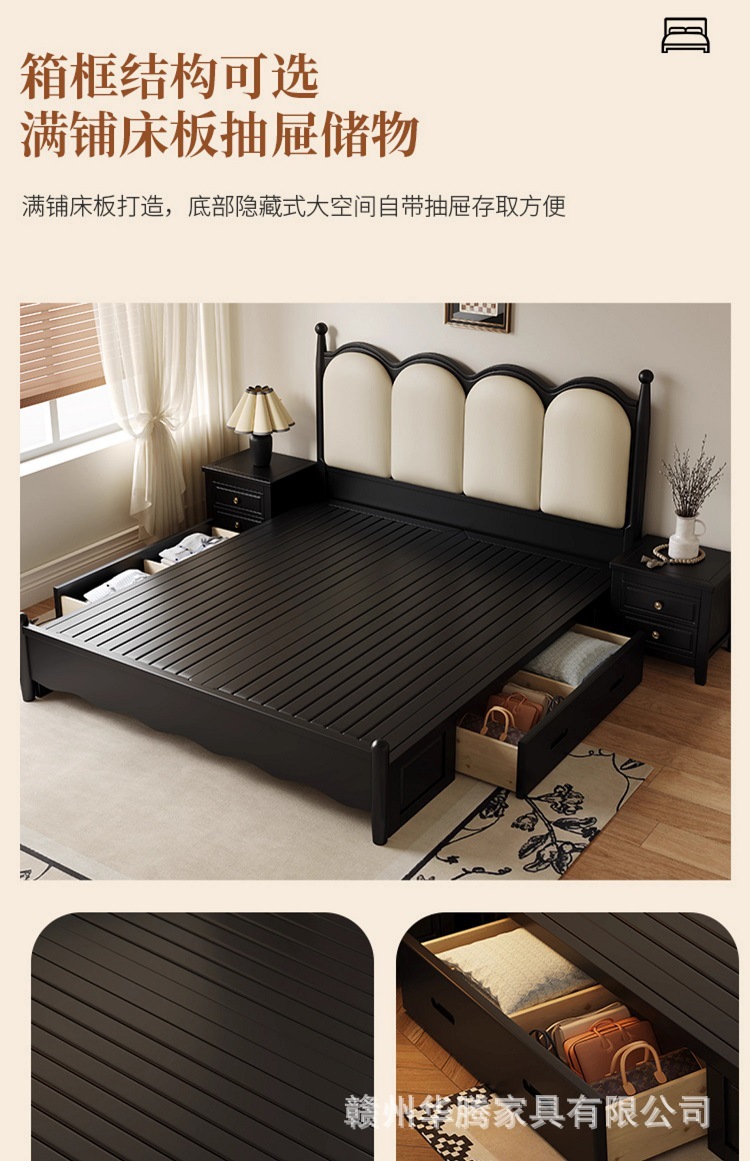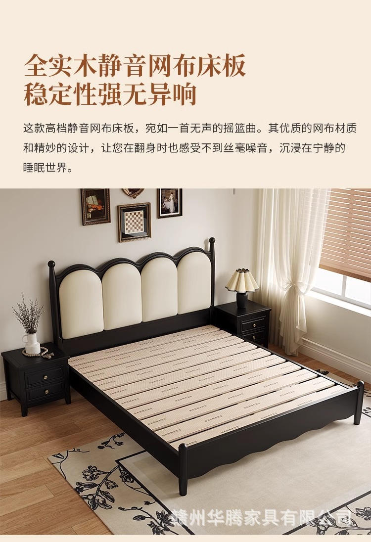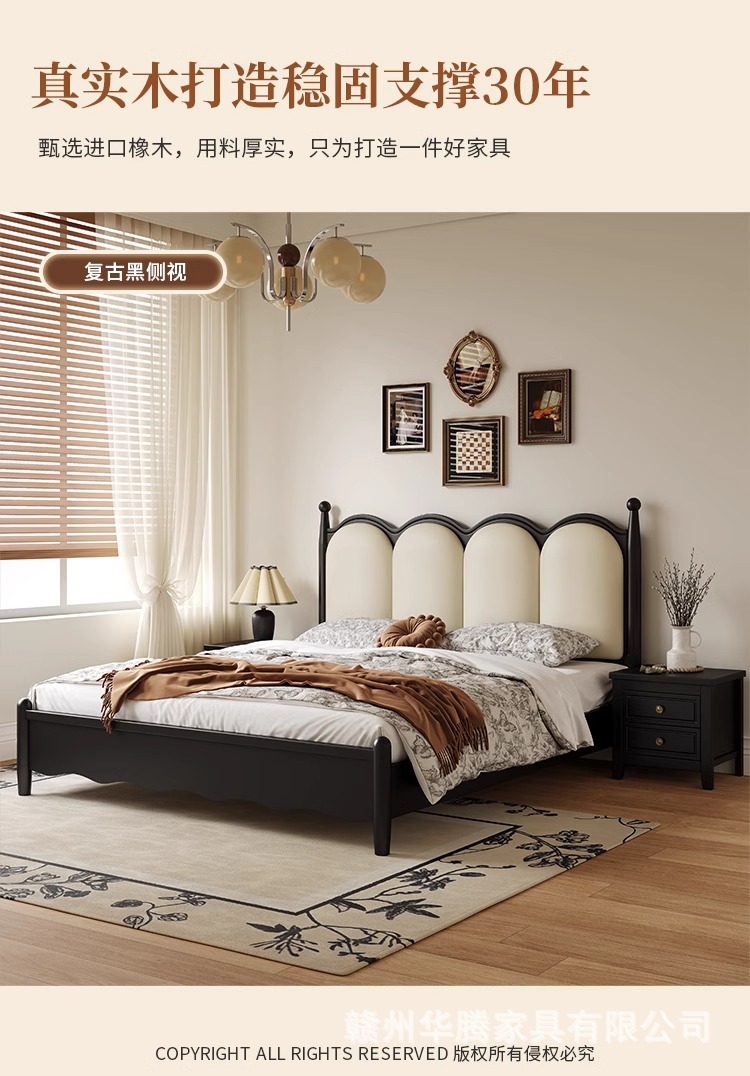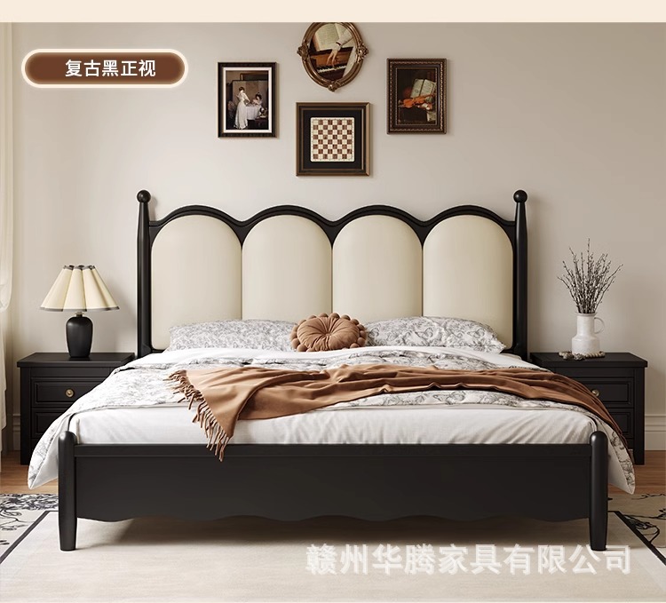프렌치 복고풍 원목 침대, 모던하고 심플한 마스터 침실, 고급스럽고 분위기 있는 더블 침대, 중세 스타일의 가벼운 럭셔리 블랙 침대스토어 가기