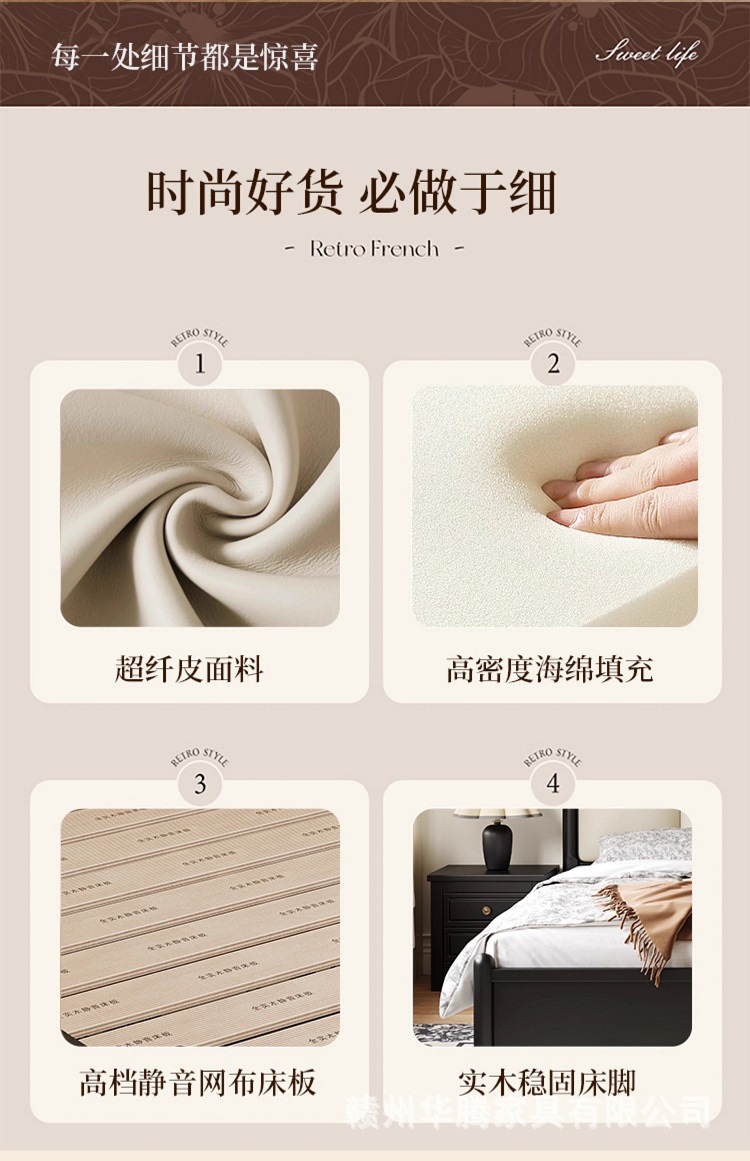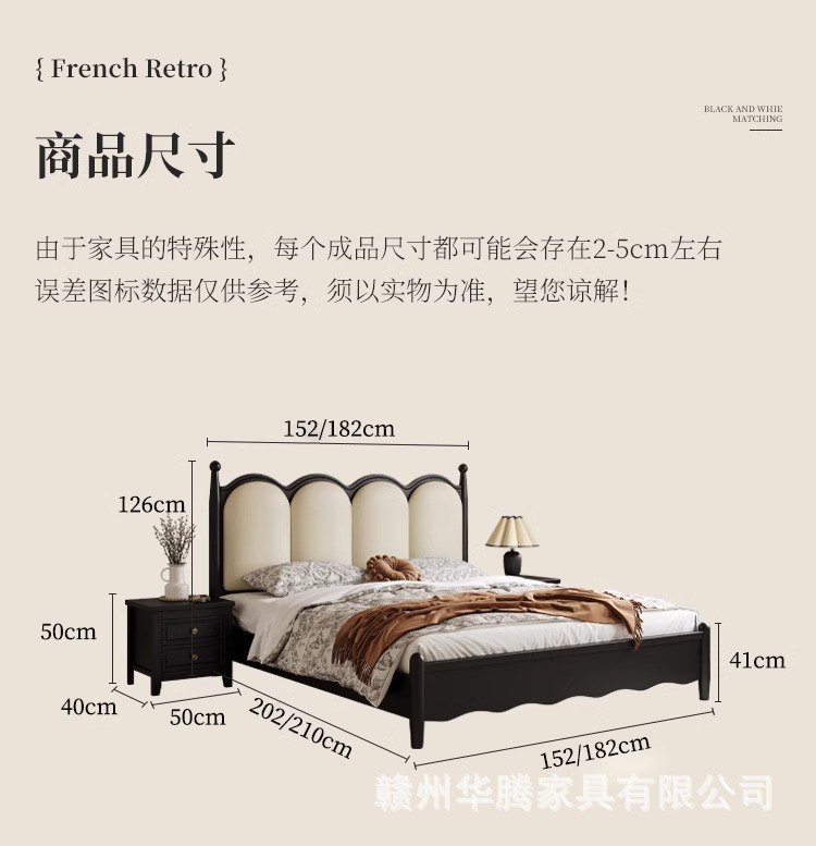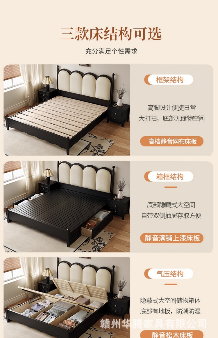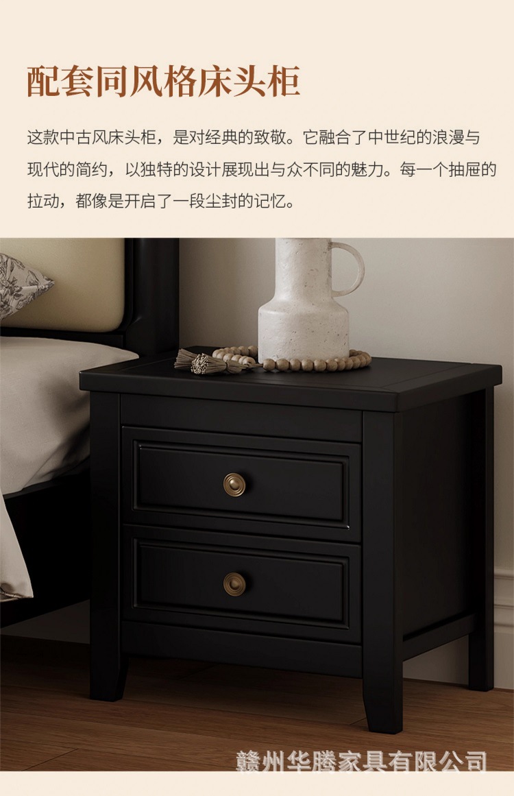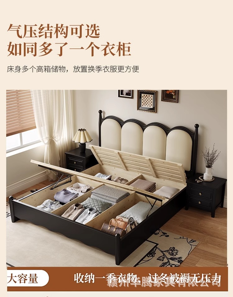 프렌치 복고풍 원목 침대, 모던하고 심플한 마스터 침실, 고급스럽고 분위기 있는 더블 침대, 중세 스타일의 가벼운 럭셔리 블랙 침대스토어 가기