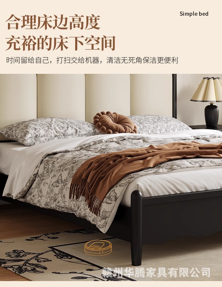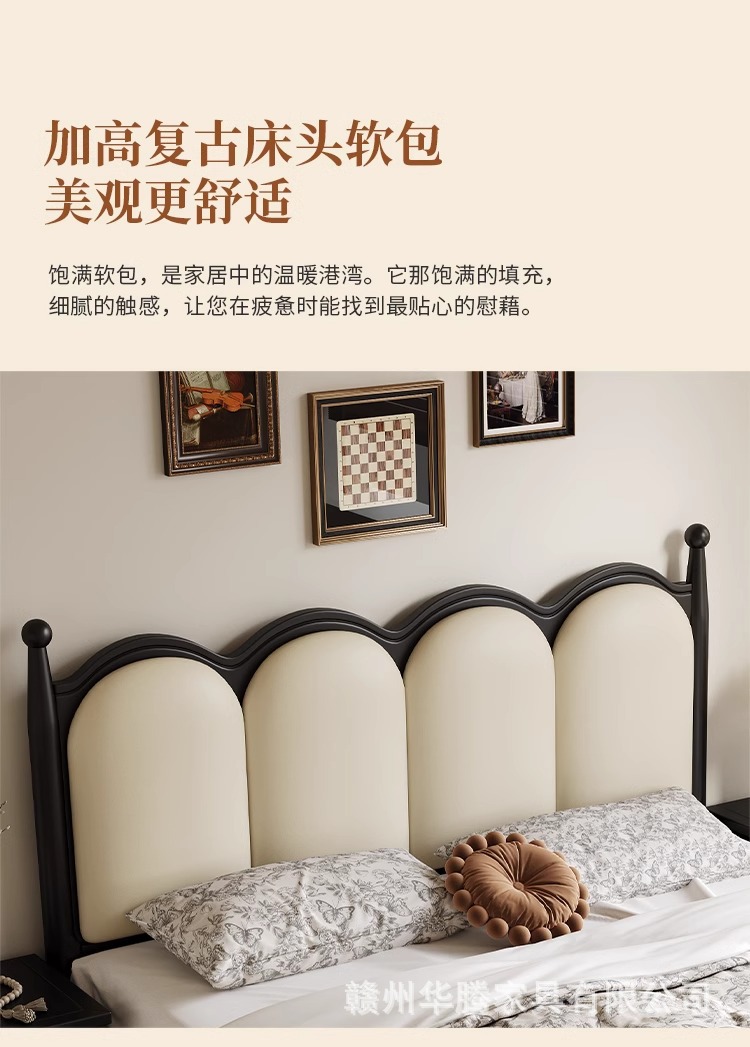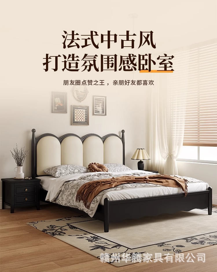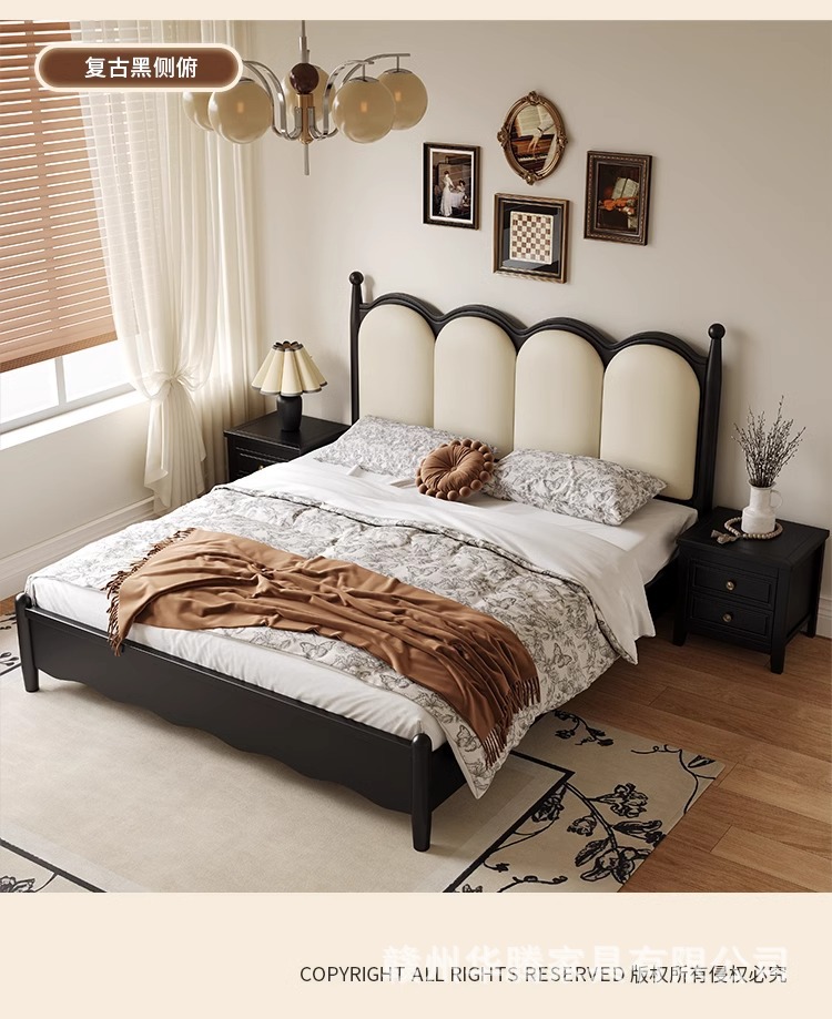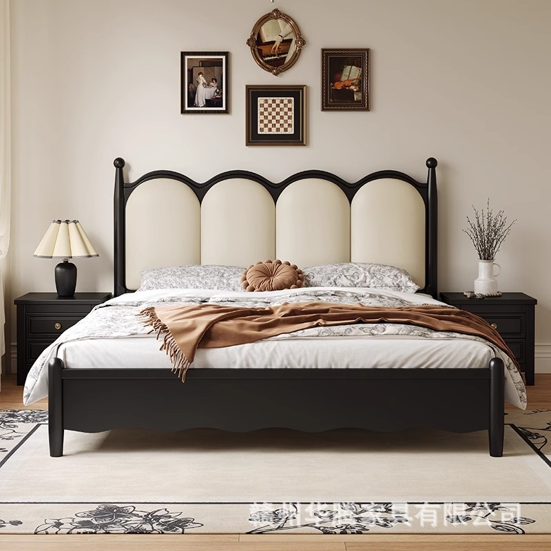 프렌치 복고풍 원목 침대, 모던하고 심플한 마스터 침실, 고급스럽고 분위기 있는 더블 침대, 중세 스타일의 가벼운 럭셔리 블랙 침대