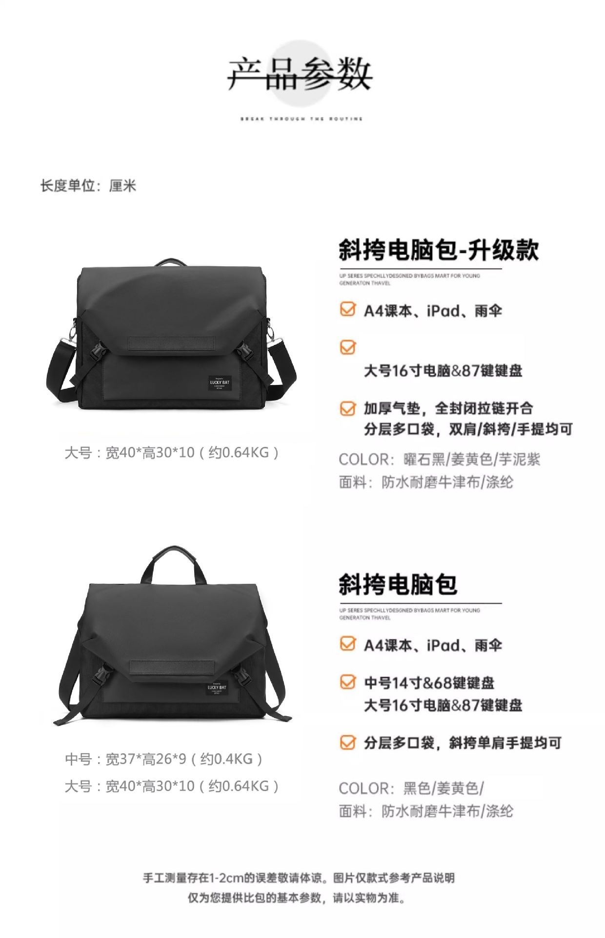 캐주얼 노트북 휴대용 어깨 컴퓨터 가방 더블 어깨 남자 16inch 충격 방지 대용량 패션 학생 스타일 메신저 가방