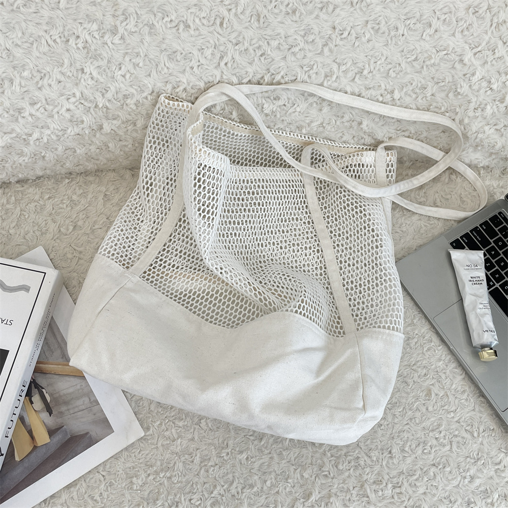 55211 솔리드 컬러 중공 대용량 토트 백 메쉬 여행 비치 백 숄더 백 캔버스 쇼핑백 여성용