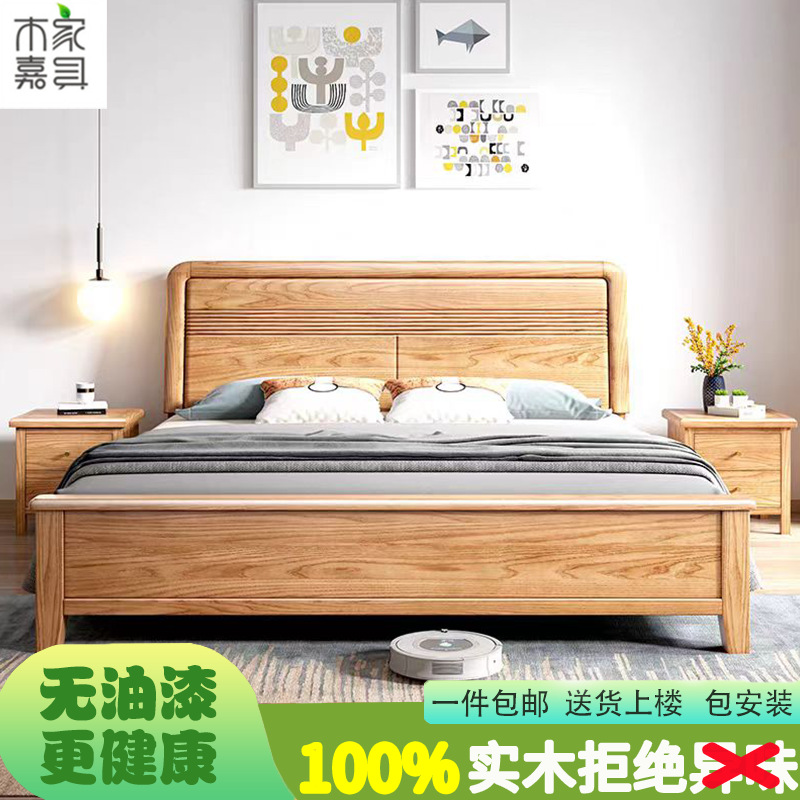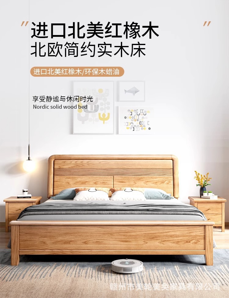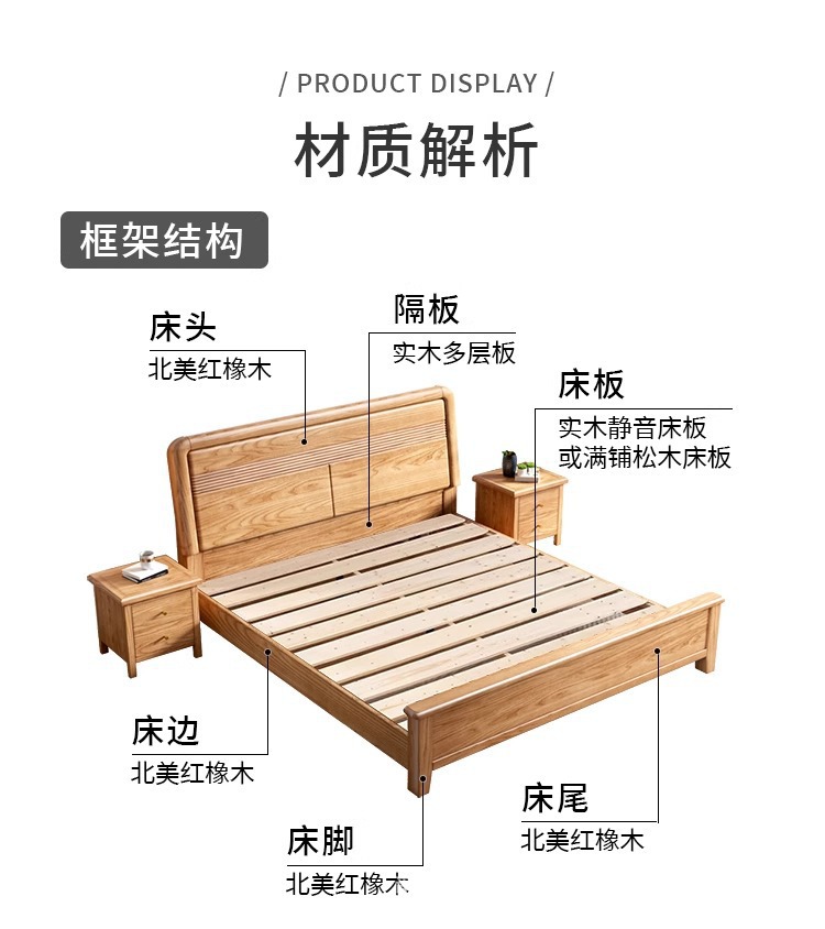 레드 오크 전체 단단한 나무 침대 1.8m 마스터 침실 더블 침대 홈 1.5m 공기 압력 높은 상자 저장 침대 어린이 싱글 침대스토어 가기