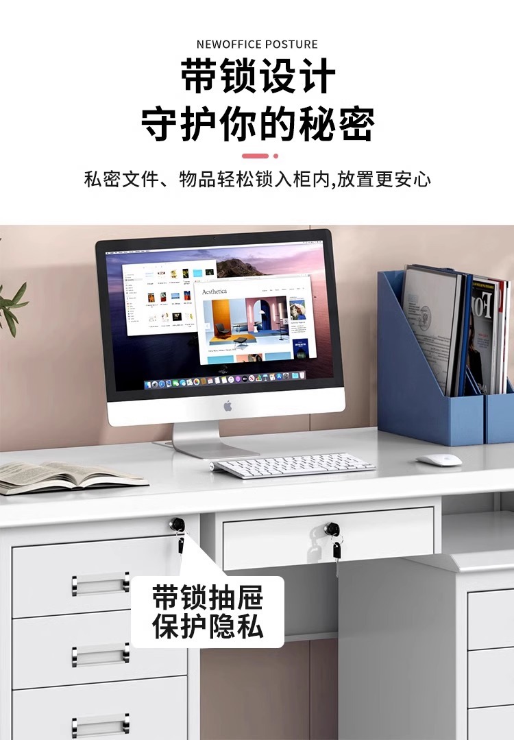 钢制办公桌财务带锁电脑桌办公室文员写字台单人带抽工作桌收银桌