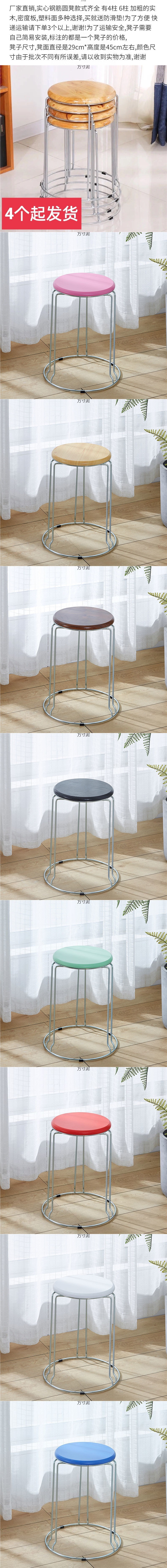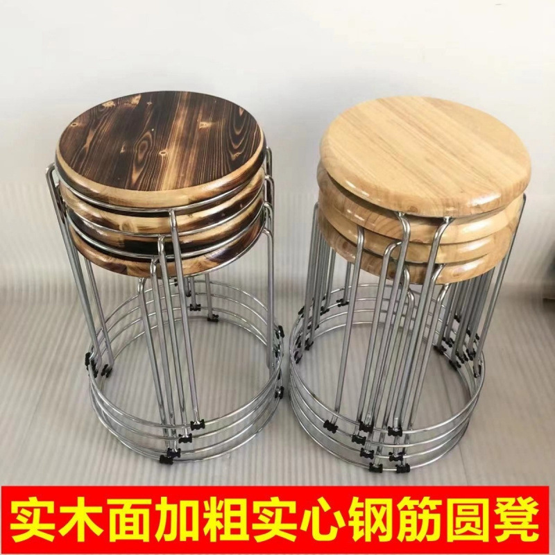 가정용 의자, 두꺼운 플라스틱 높은 의자, 식탁 벤치, 쌓을 수 있는 간단하고 세련된 나무 의자, 튼튼한 강철 원형 의자스토어 가기