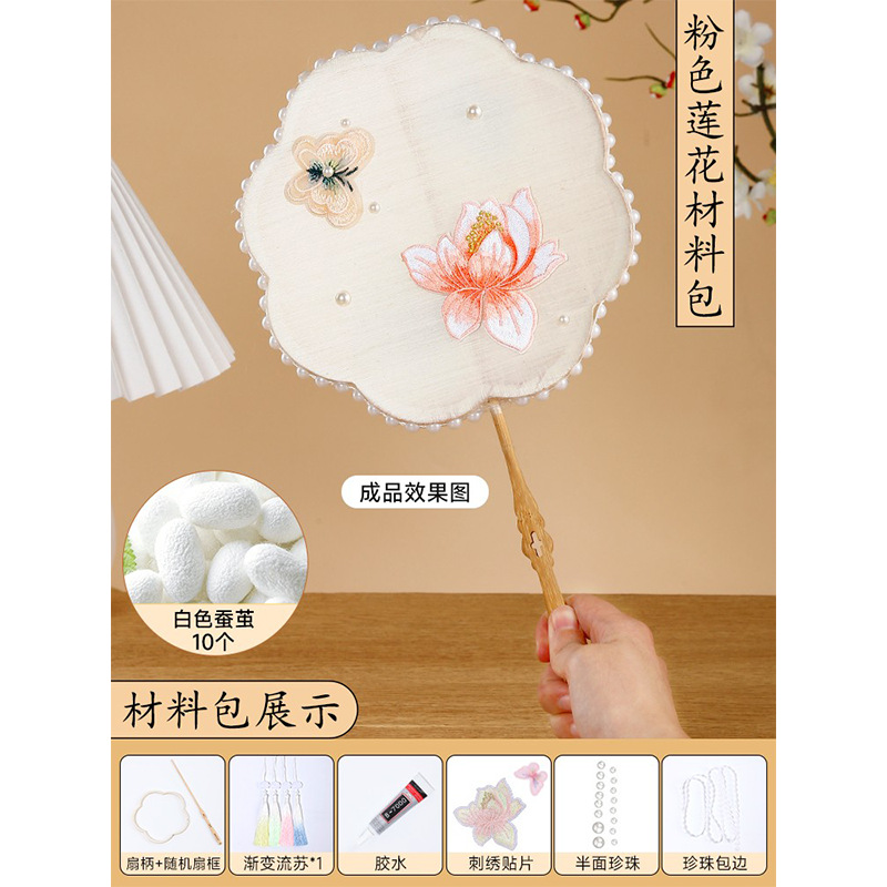 • 핑크 연꽃 부채 재료 팩 [누에고치 포함]