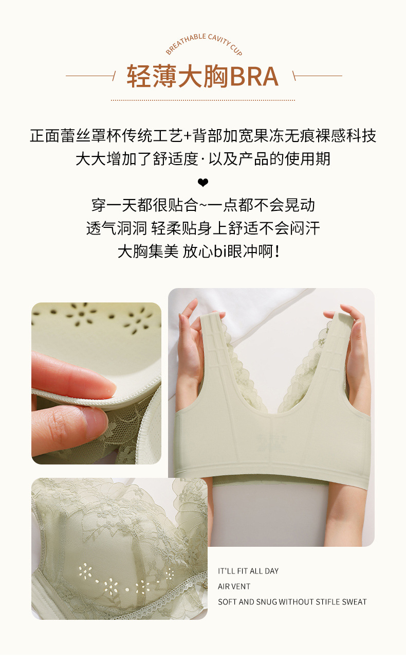 가슴이 큰 여성을 위한 심리스 조끼 일체형 속옷, 얇은 브라, 와이어 없음, 푸쉬업, 가슴축소, 통기성 브라스토어 가기