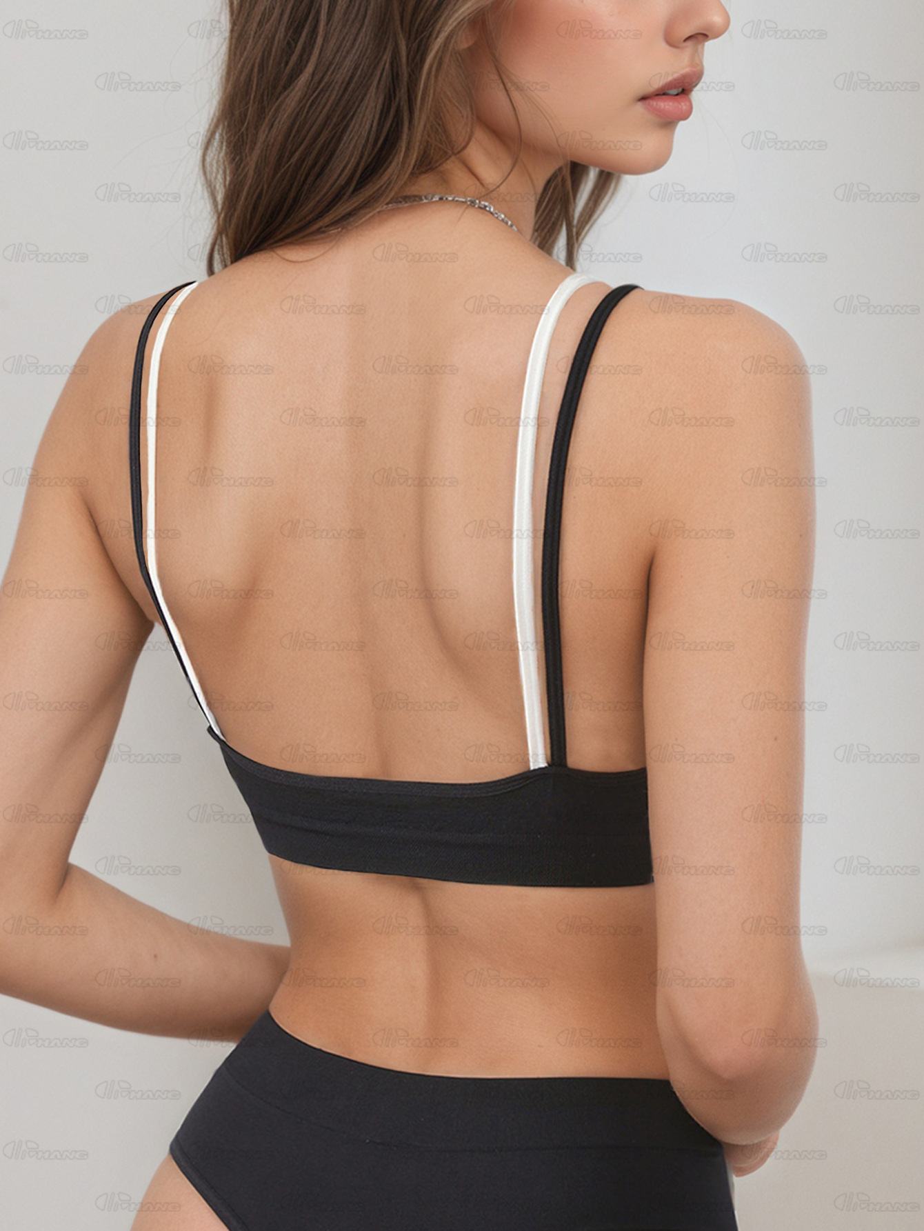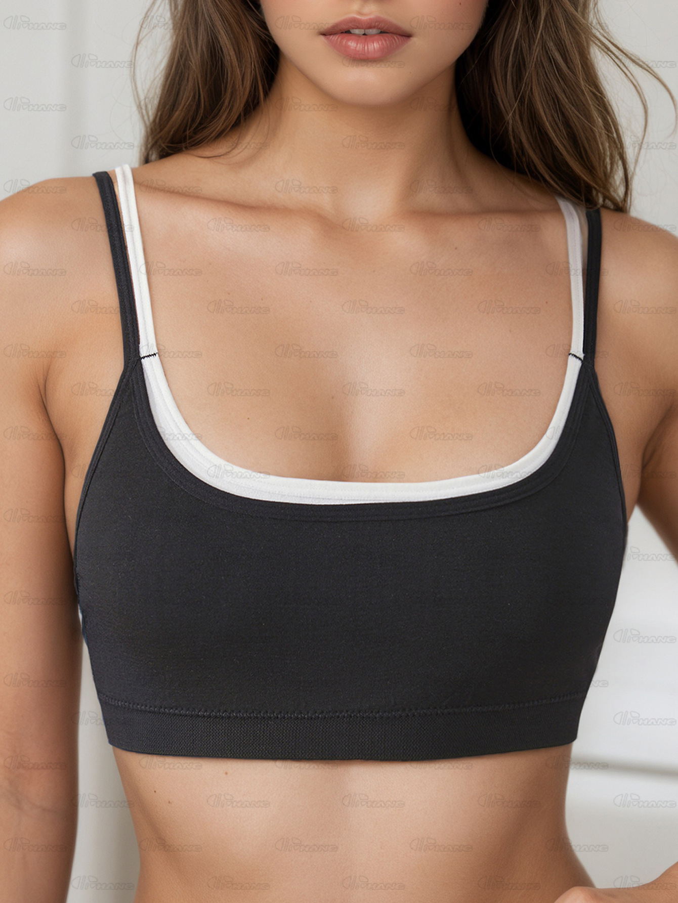 대비 색상 가짜 투피스 스포츠 브라 더블 레이어 더블 숄더 스트랩 체육관 트레이닝 러닝 요가 조끼 스포츠 브라