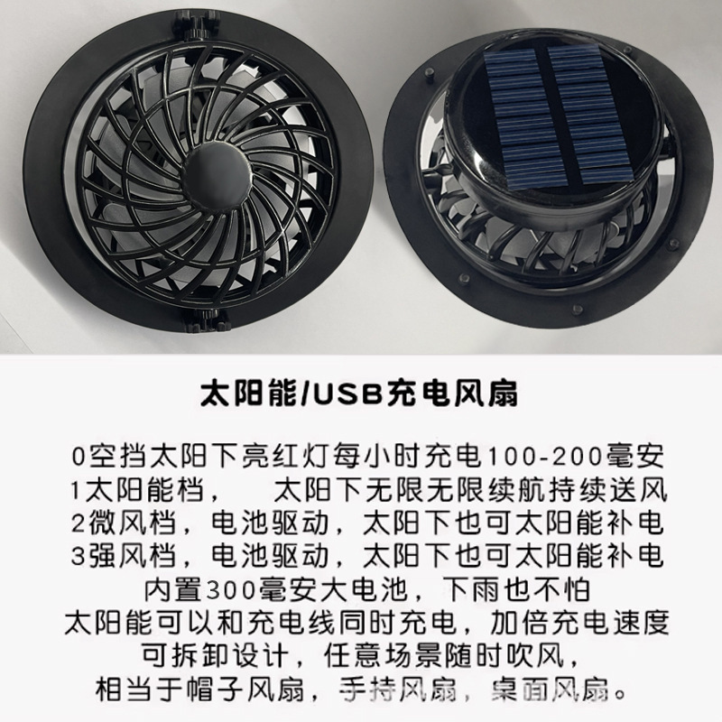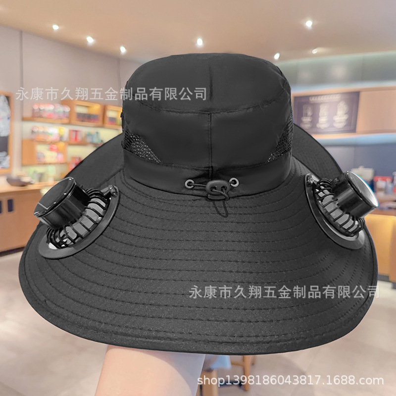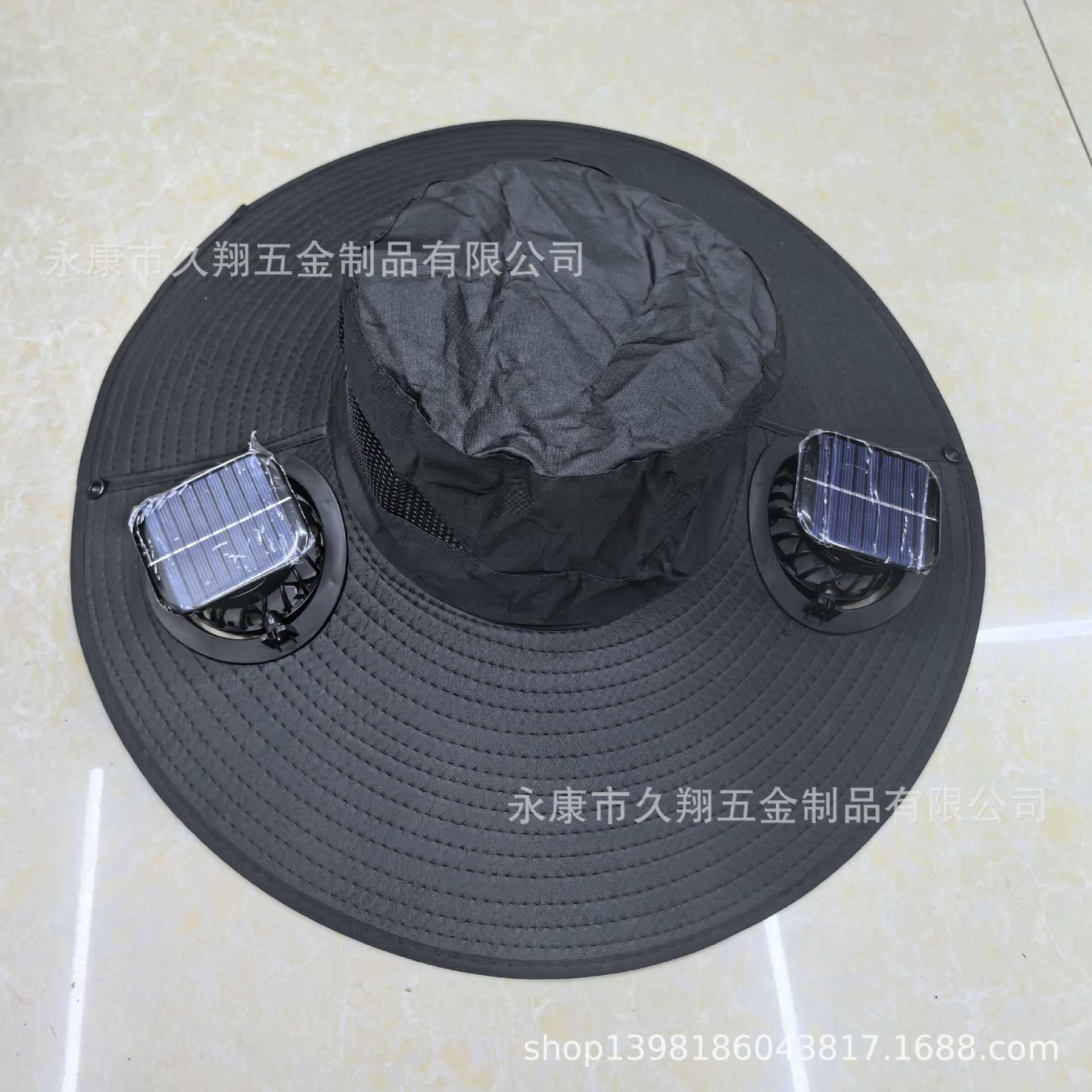 • 검은색 사각형 이중 어부 태양열 팬 모자