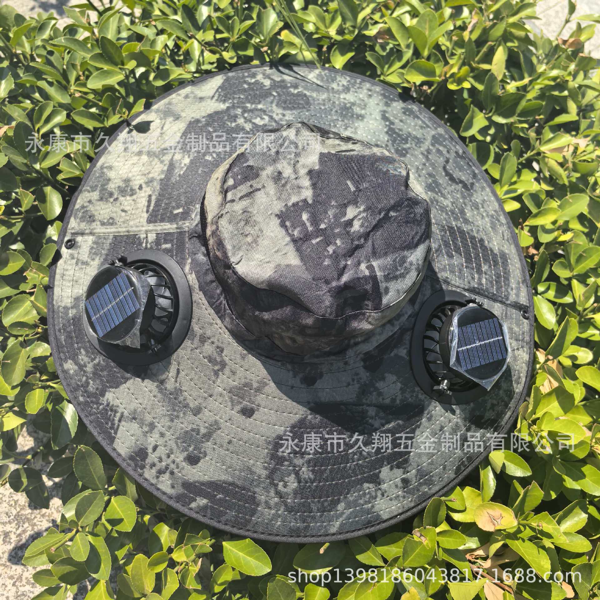 • 위장 육군 녹색-더블 어부 [태양광 팬 모자]