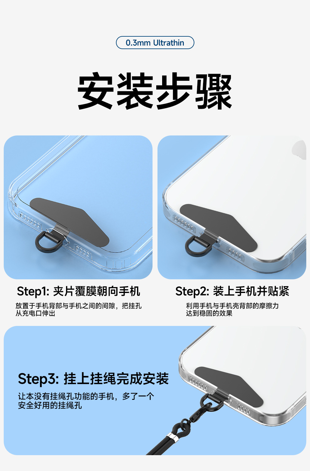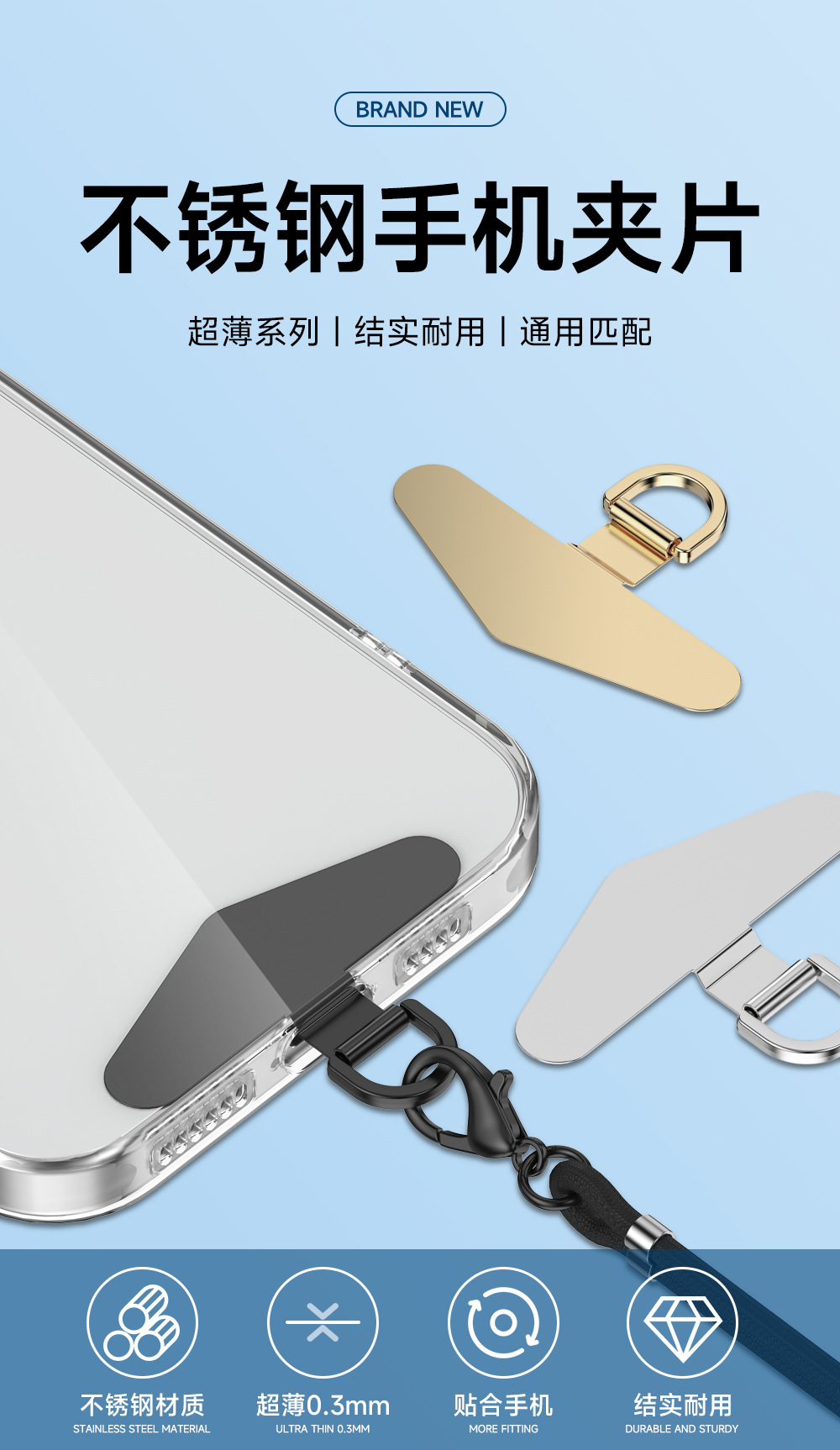 휴대폰 개스킷, 휴대폰 클립, 스테인레스 스틸 금속 연결 조각, 끈 개스킷, 튼튼한 휴대폰 케이스 로프, 카드 백 클립스토어 가기