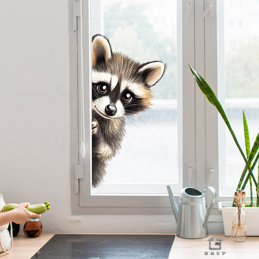 HS-UV3925Q 귀여운 트릭 재미 있은 자체 접착 작은 너구리 양면 시각적 침실 창 시뮬레이션 장식 스티커스토어 가기