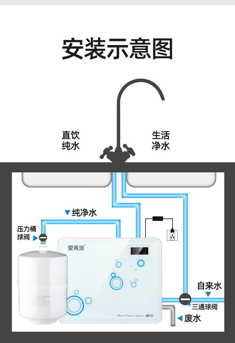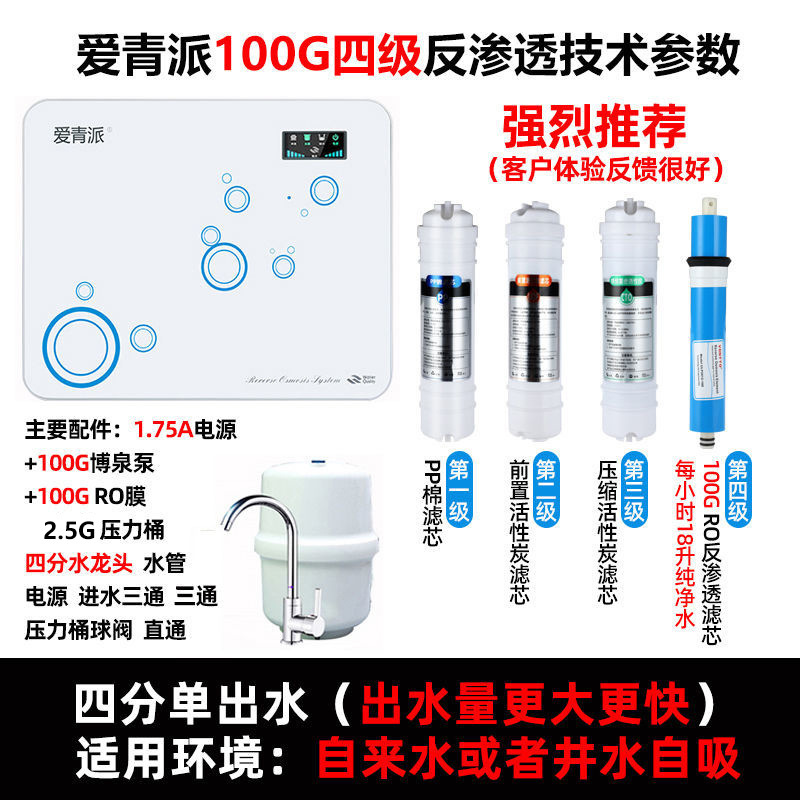 정수기 가정용 직접 마시는 RO 역삼투 필터 주방 수돗물 우물물 자흡식 스케일 제거 벽걸이형 데스크탑 공장스토어 가기