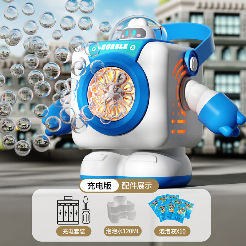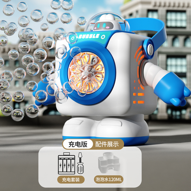 국경 간 인기 10 홀 로봇 버블 건 어린이 장난감 빛 전기 버블 머신과 휴대용 장난감 도매