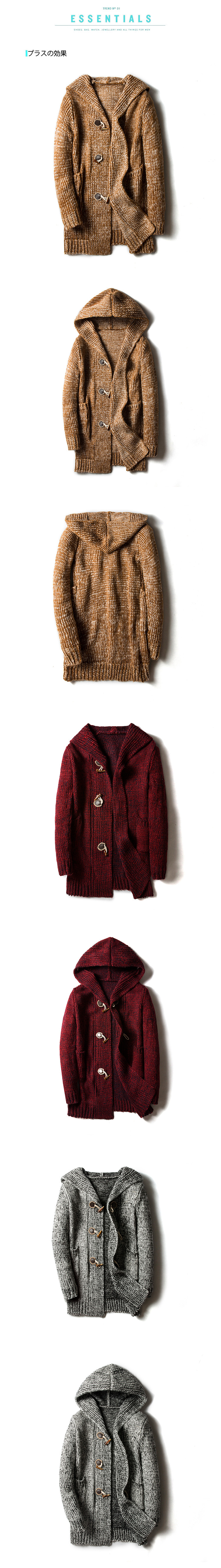대외 무역 남성용 중간 길이 후드 가디건 스웨터 남성용 두꺼운 스웨터 혼 버튼 대형 캐주얼 재킷스토어 가기