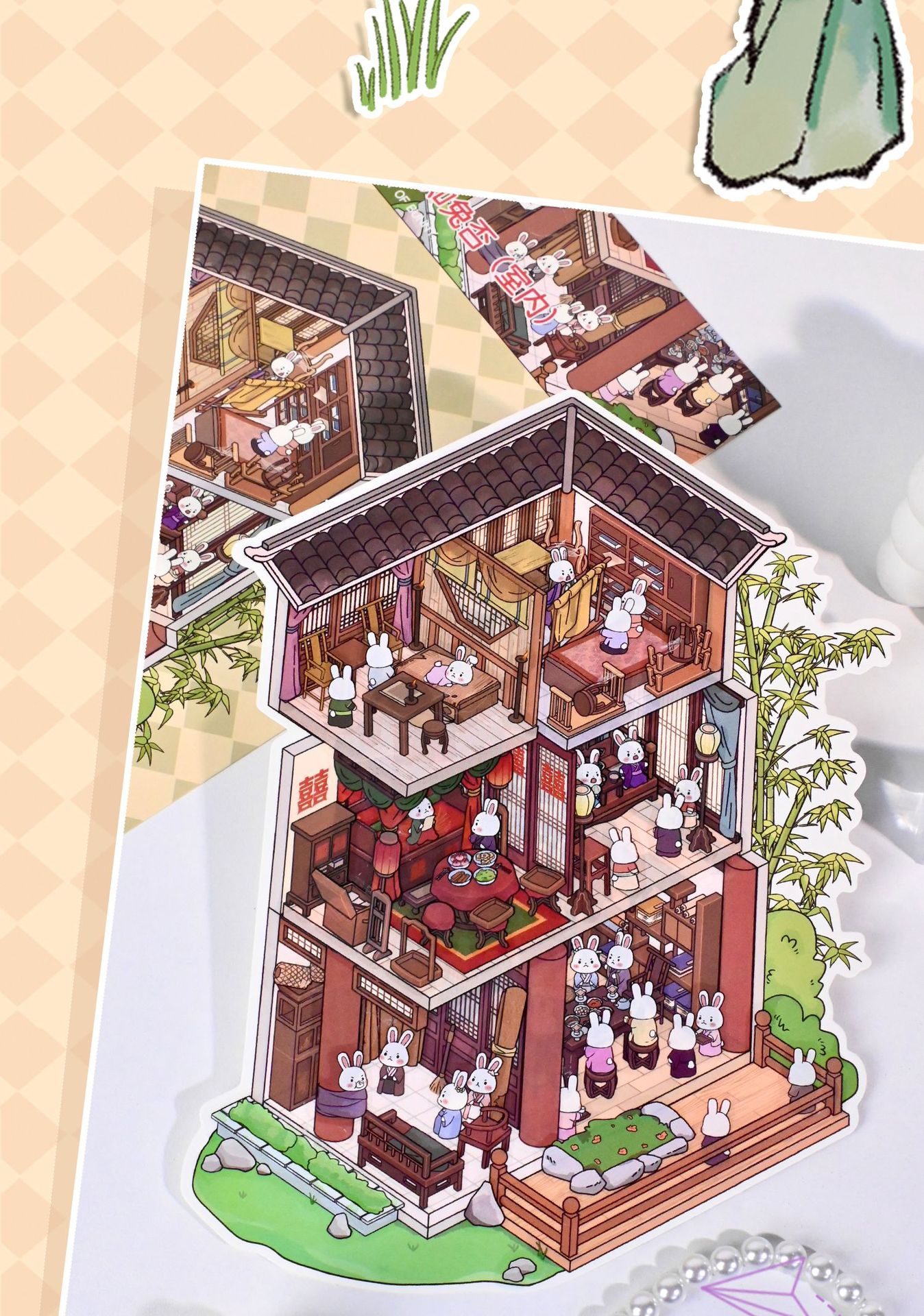 Shiyou 대형 버전 Zhituifou 시리즈 고대 스타일 미니어처 장면 조경 스티커 수제 DIY 2.5d 입체 스티커스토어 가기