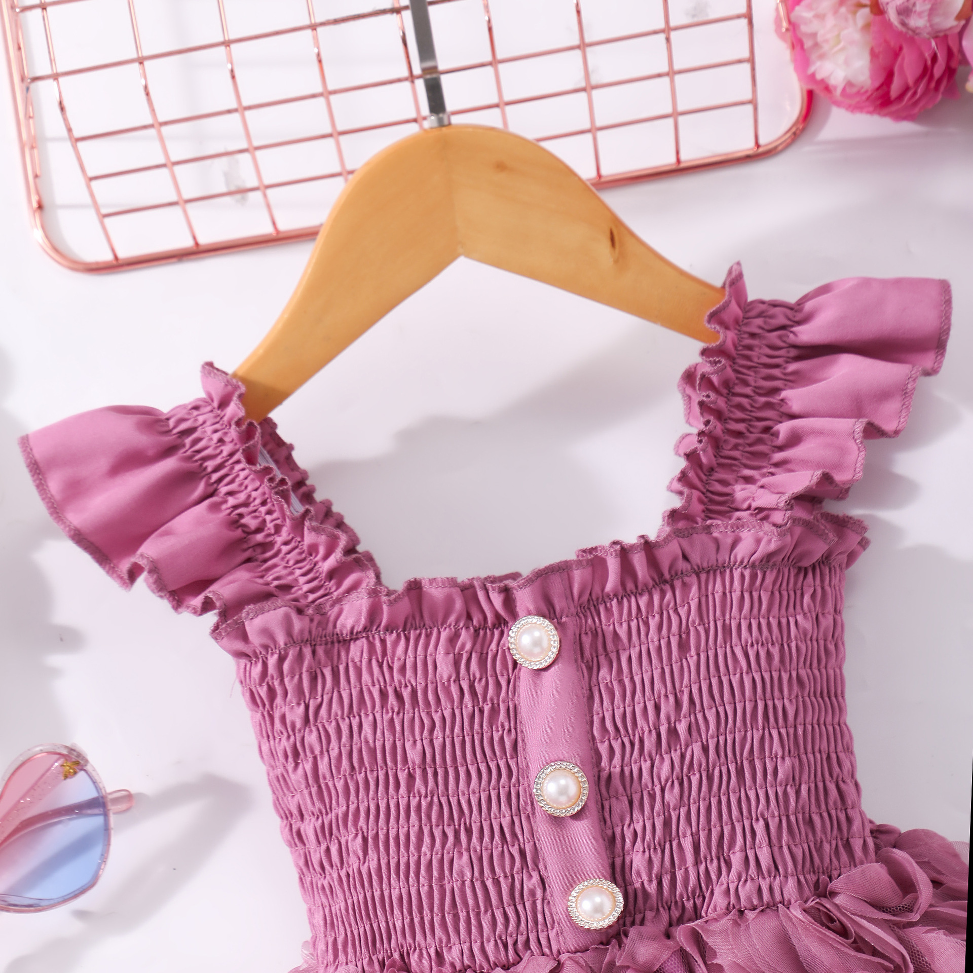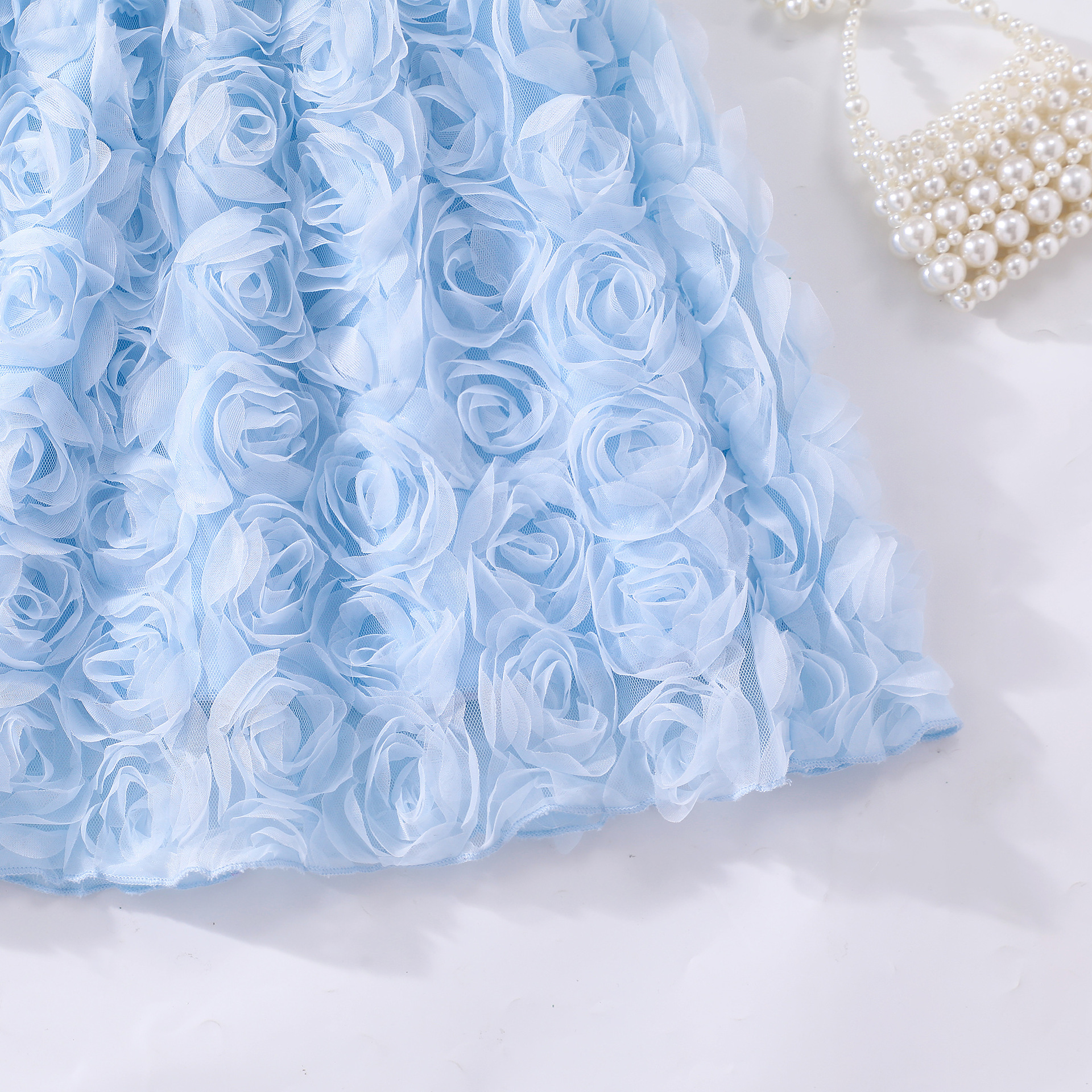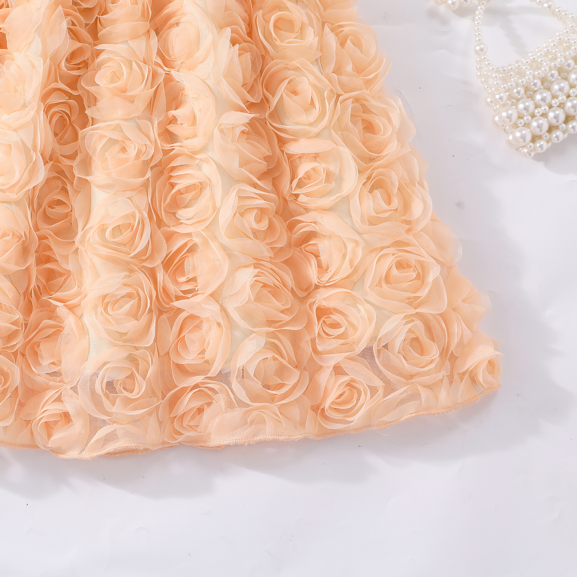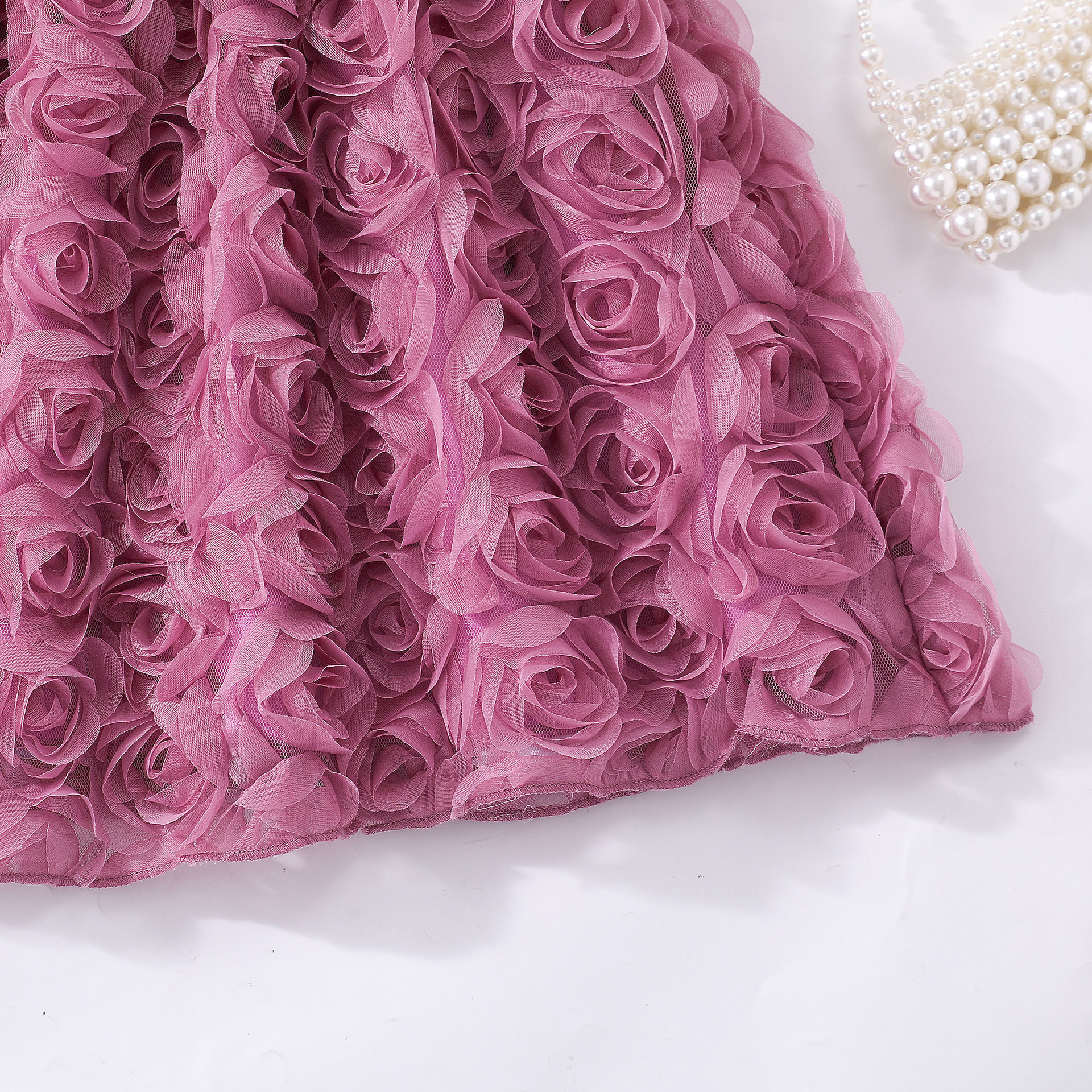 여아(소) 드레스, 여름 솔리드 컬러 플라잉 슬리브 입체 로즈 드레스스토어 가기