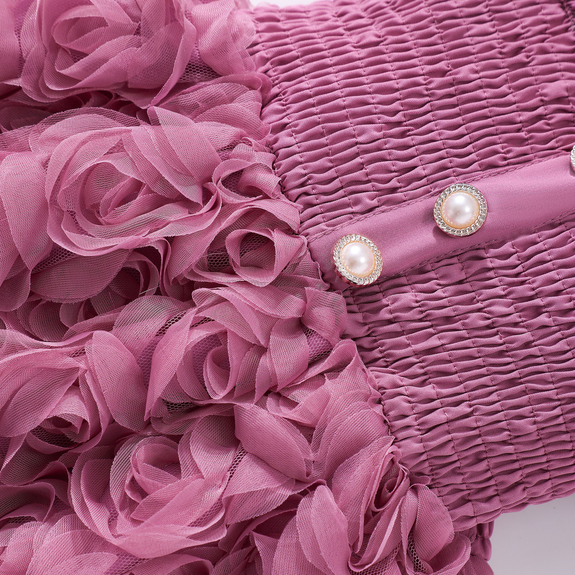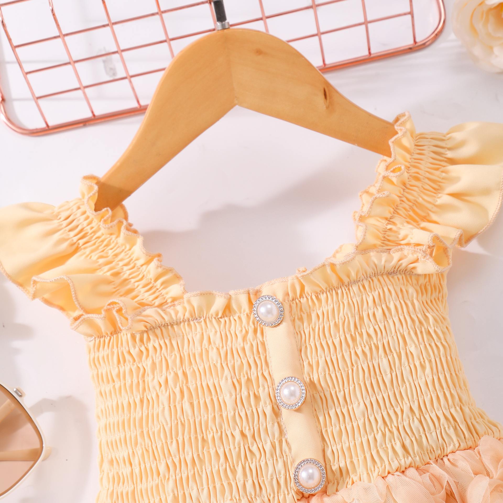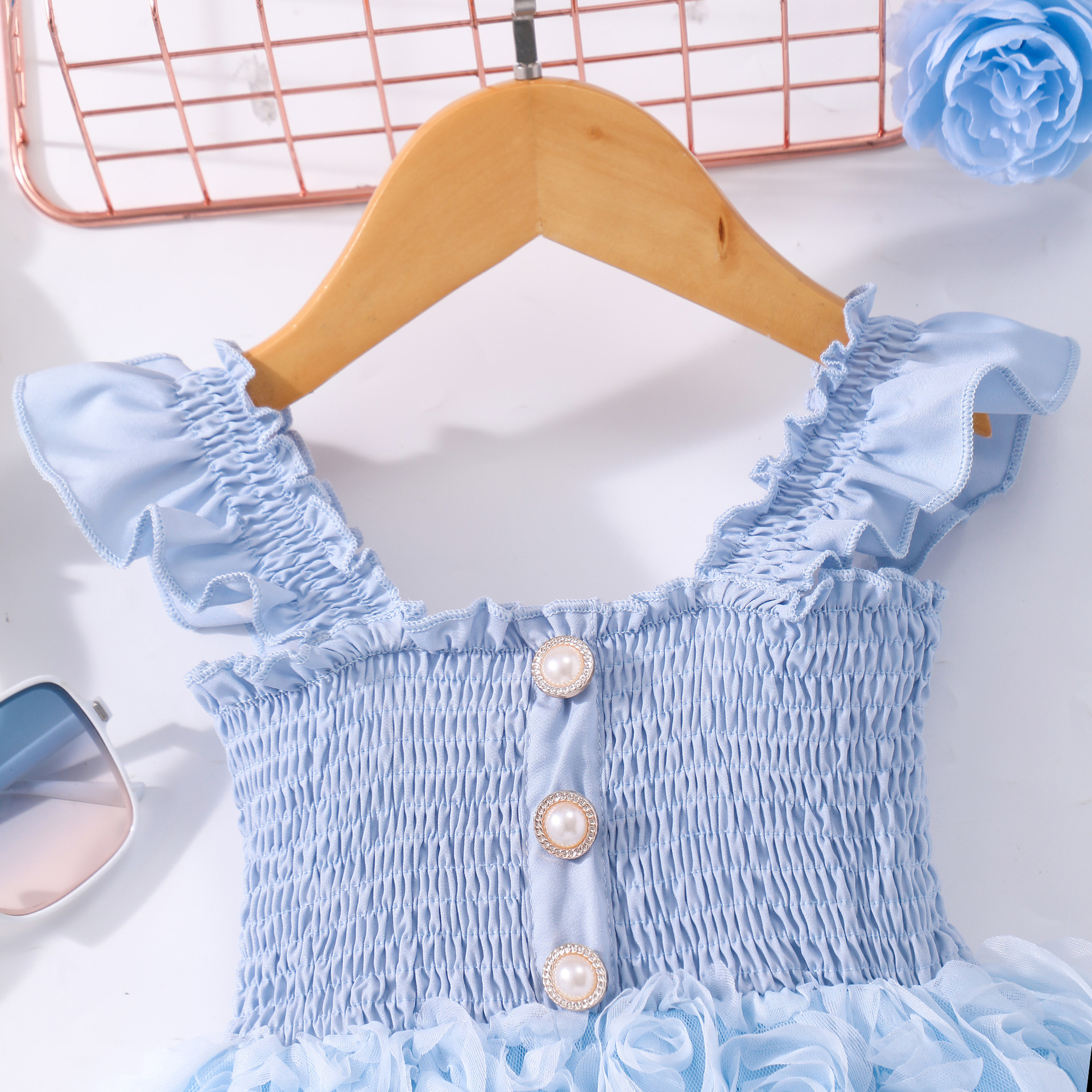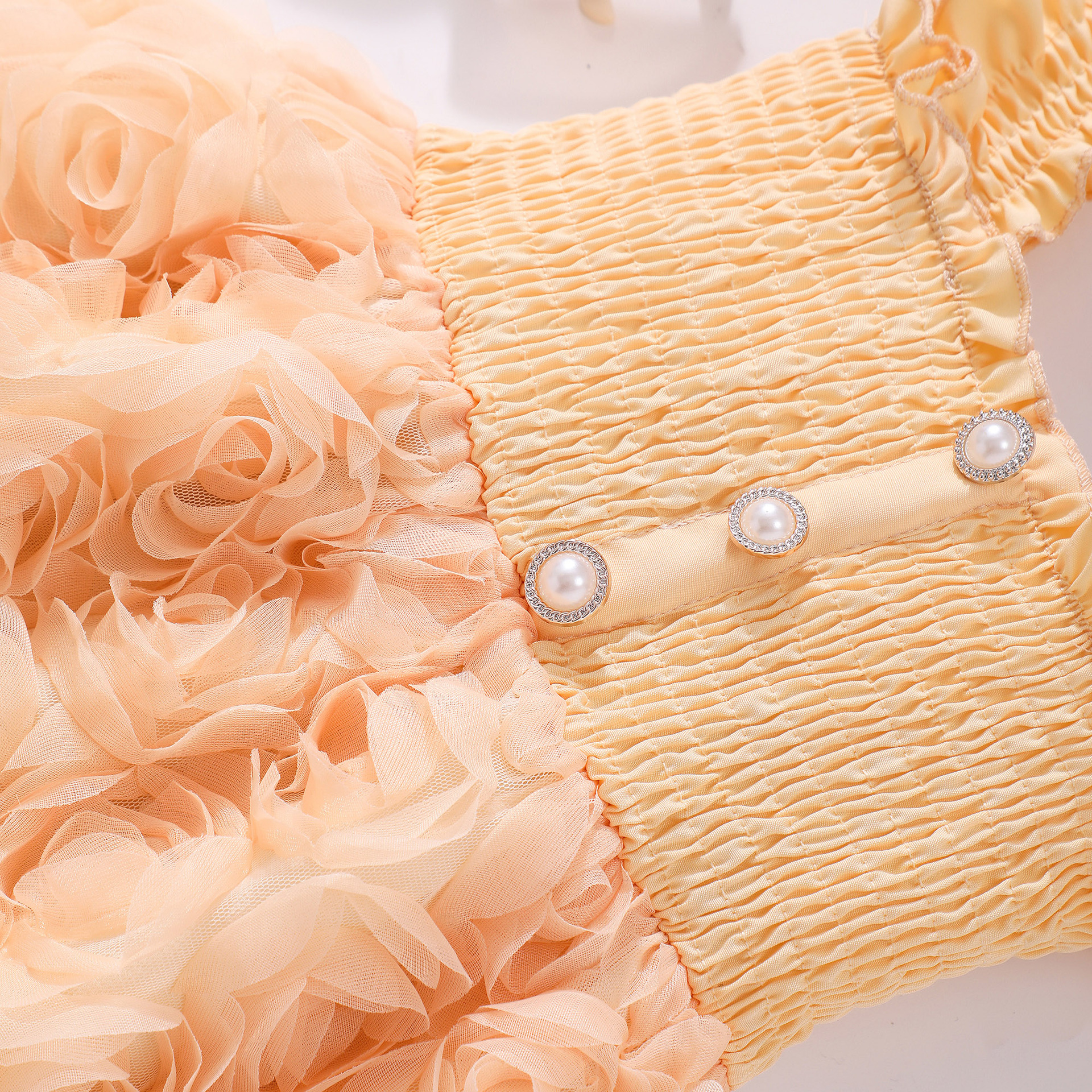 여아(소) 드레스, 여름 솔리드 컬러 플라잉 슬리브 입체 로즈 드레스스토어 가기