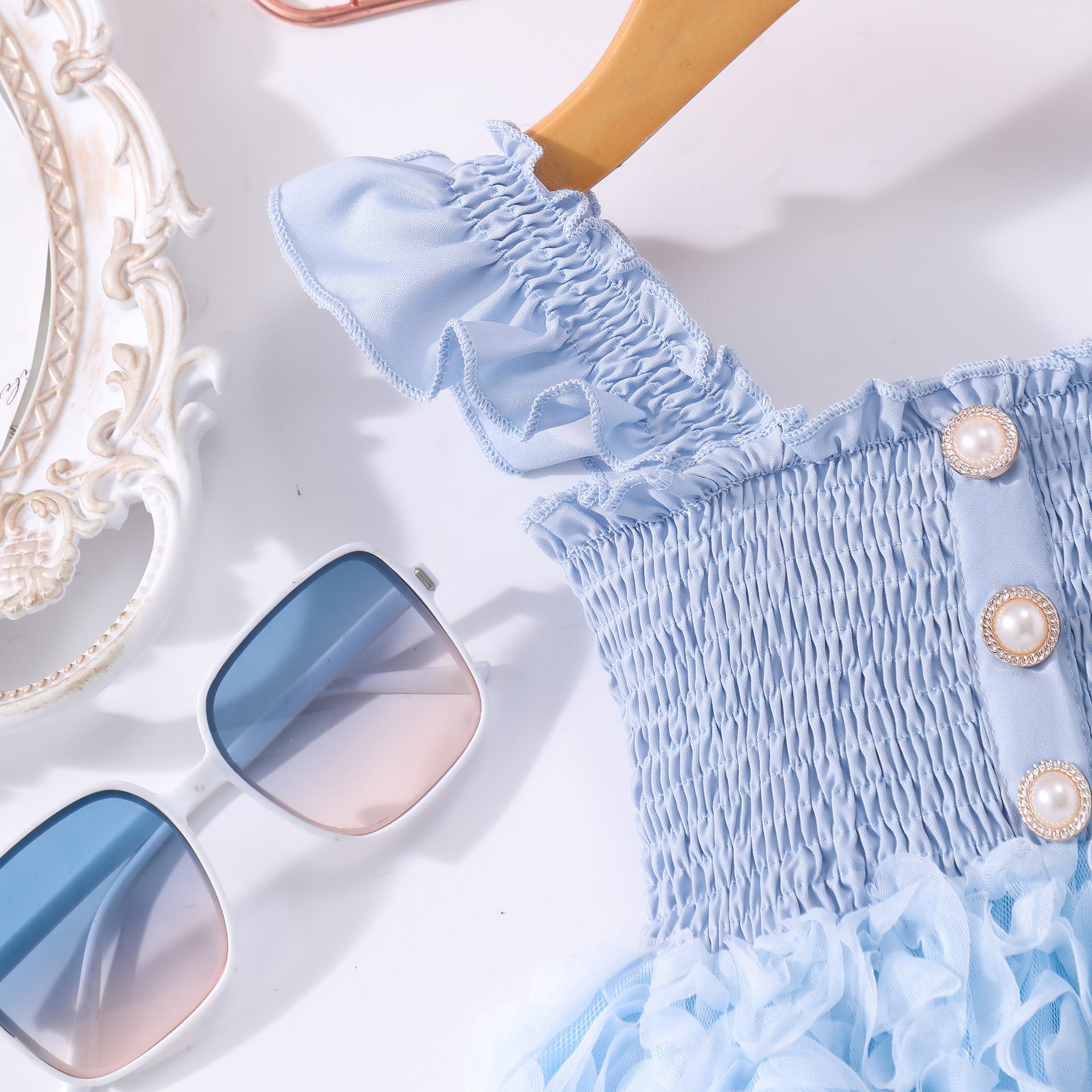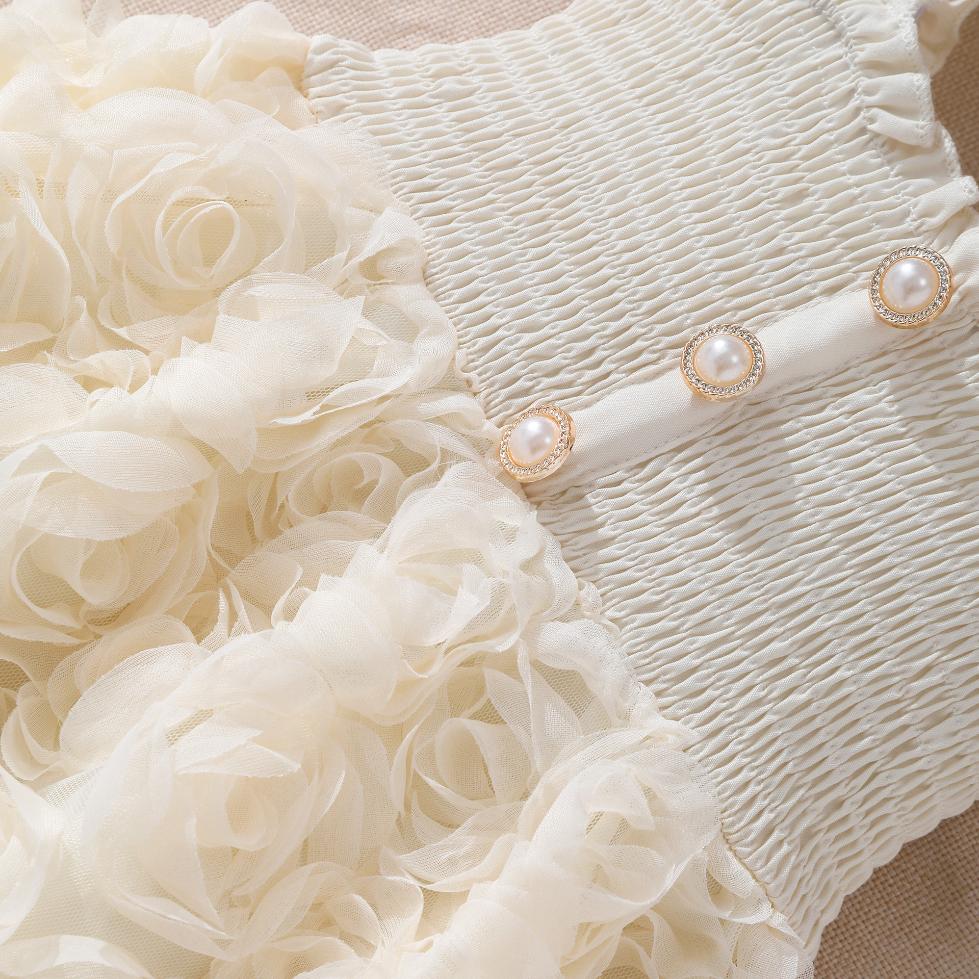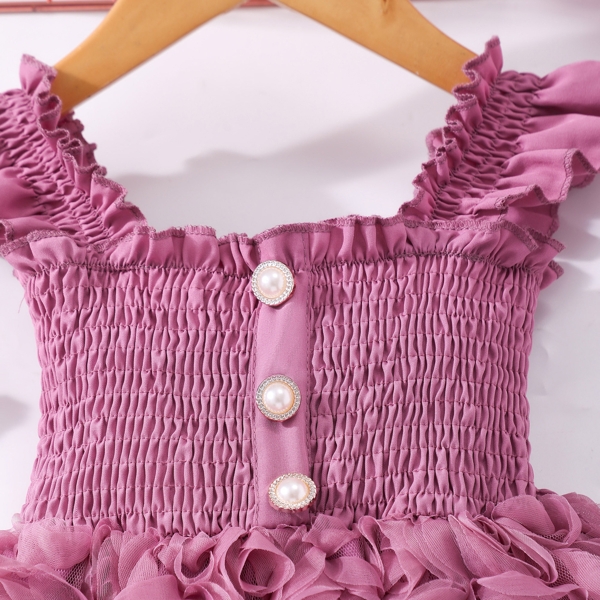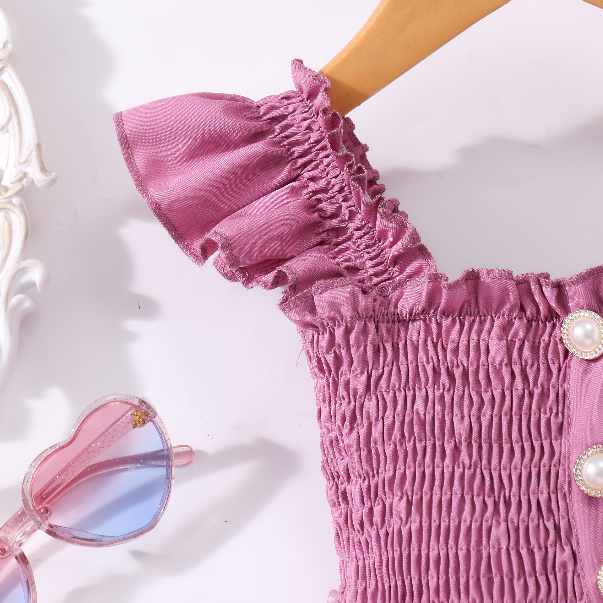 여아(소) 드레스, 여름 솔리드 컬러 플라잉 슬리브 입체 로즈 드레스스토어 가기