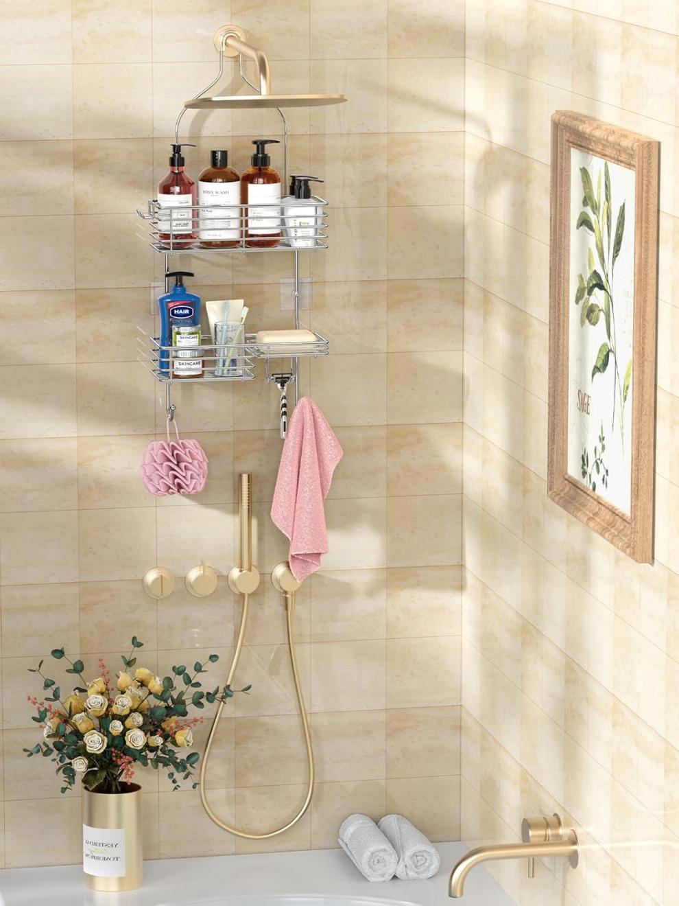 크로스보더 특별히anging 샤워 수납 선반, 녹 방지 욕실 샤워실 선반 SUS201 소재 실버스토어 가기
