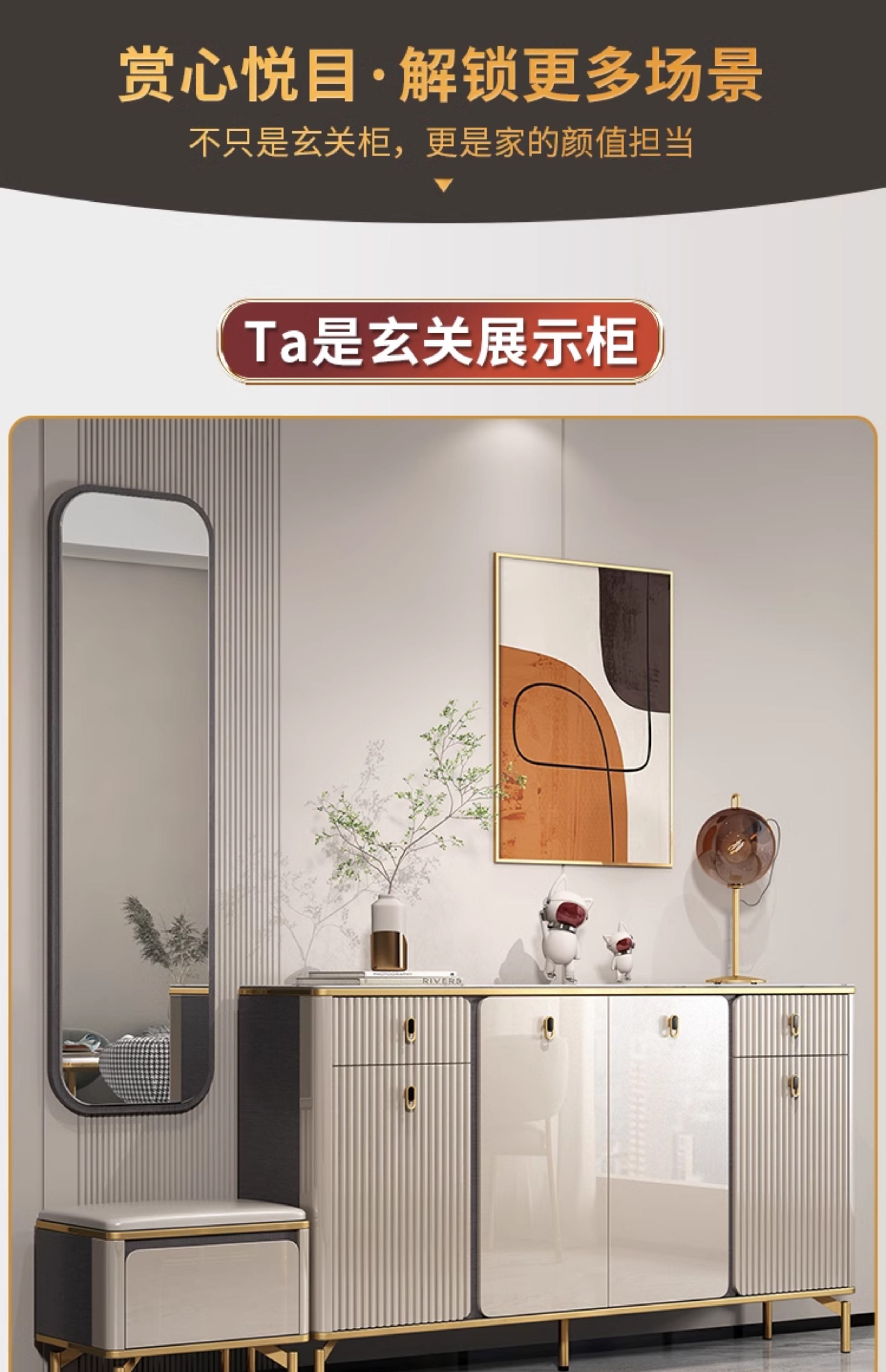가벼운 고급 신발장, 집 입구, 실내 현관 수납장, 일체형 의자, 2025년 새로운 핫 스타일, 고급형스토어 가기