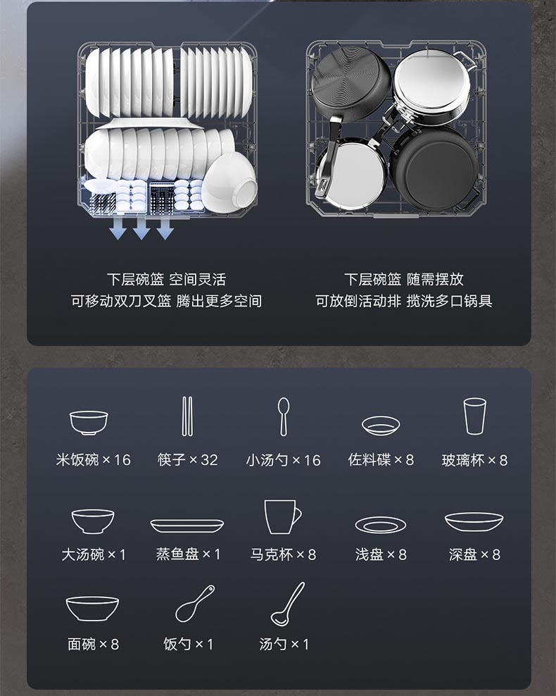 2025 완전 자동 가정용 식기 세척기 내장형 가정용 지능형 뜨거운 공기 건조 대용량 완전 자동 16 세트 N1