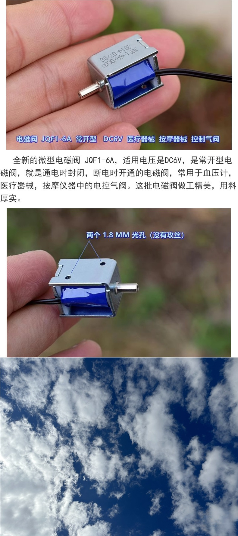마이크로 솔레노이드 밸브 JQF1-6A 상시 개방형 DC6V 기기 마사지 기기 제어 공기 밸브