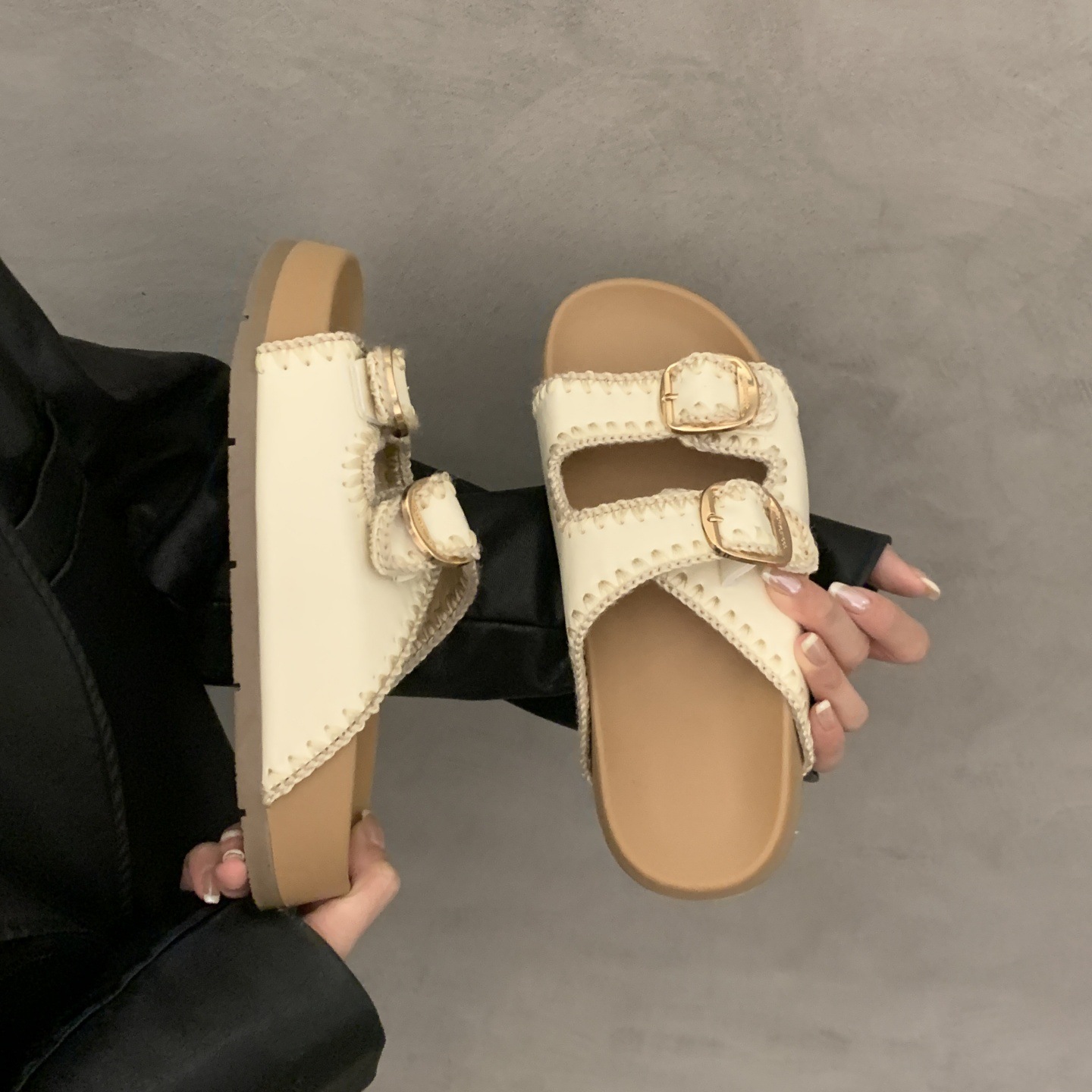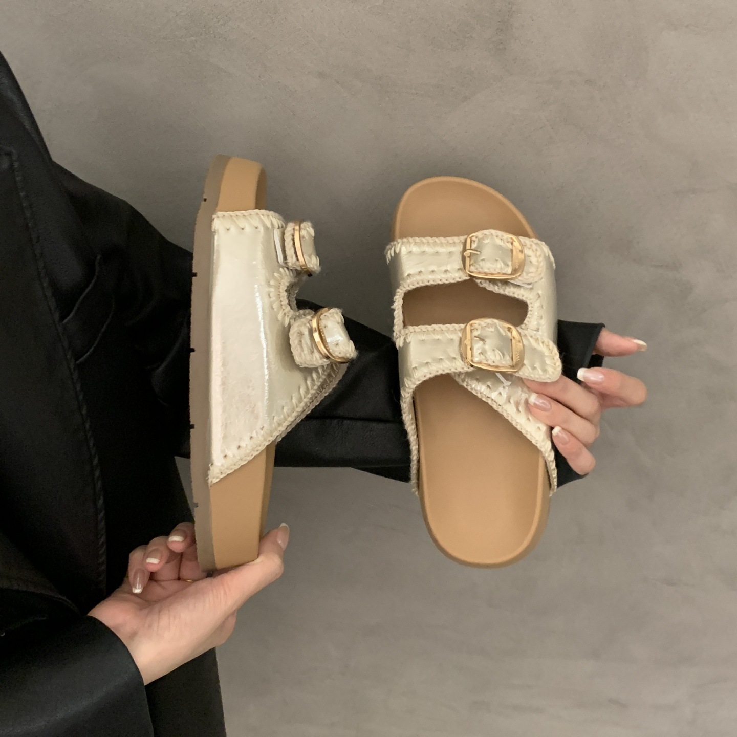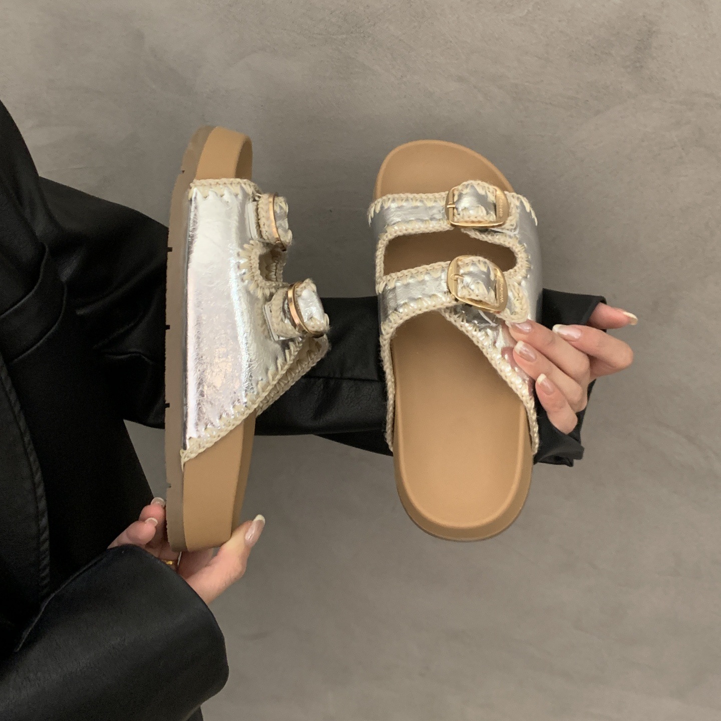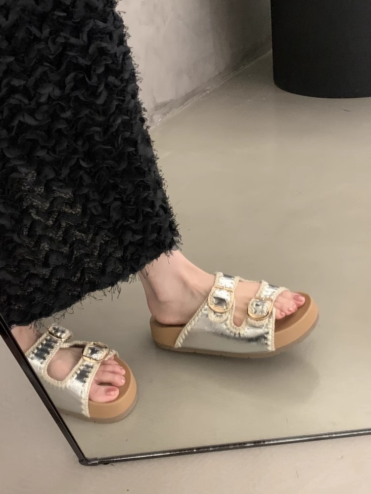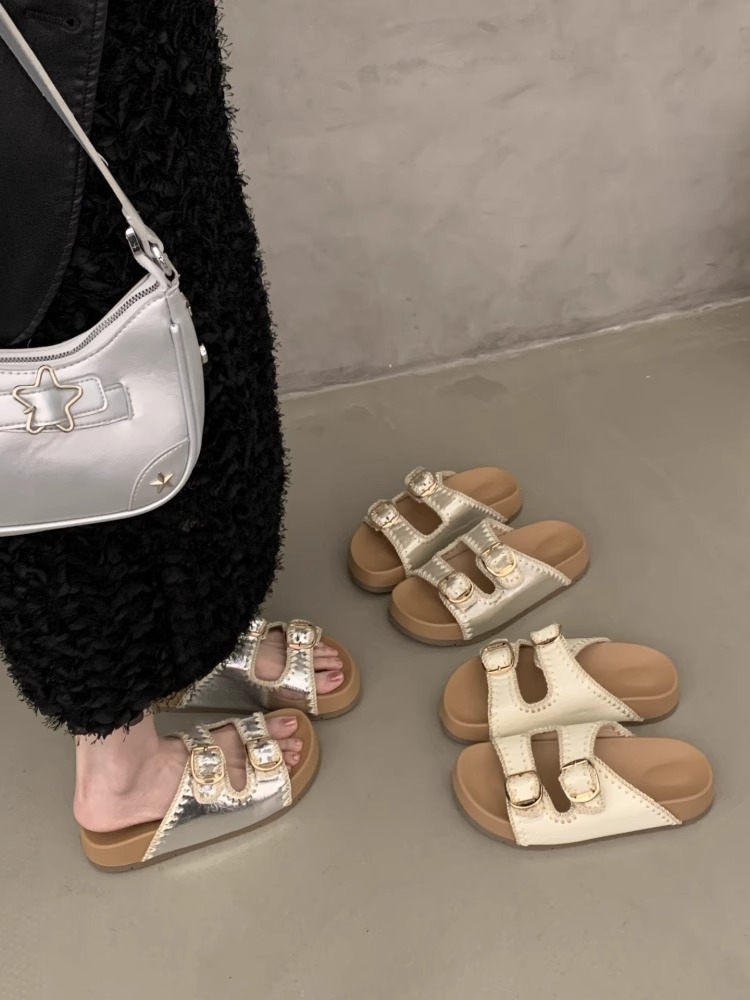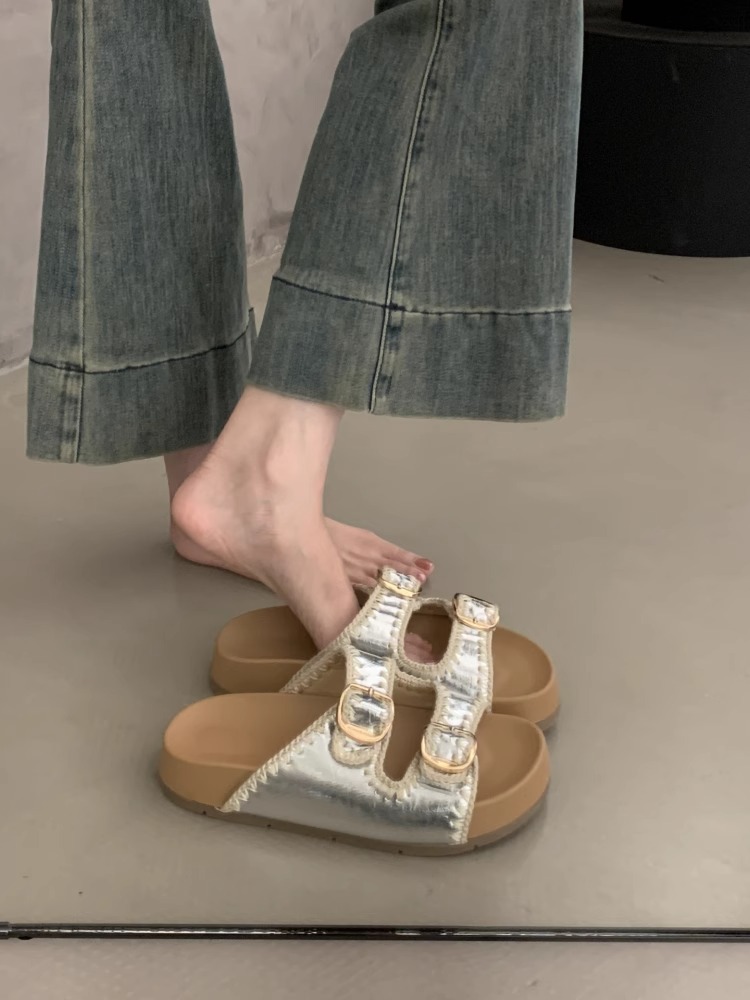 여름 아우터용 여성용 실버 두꺼운 밑창 버켄스탁 슬리퍼 2025 신상 여성화 인터넷 연예인 다용도 인기 캐주얼 샌들