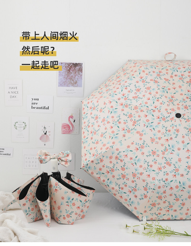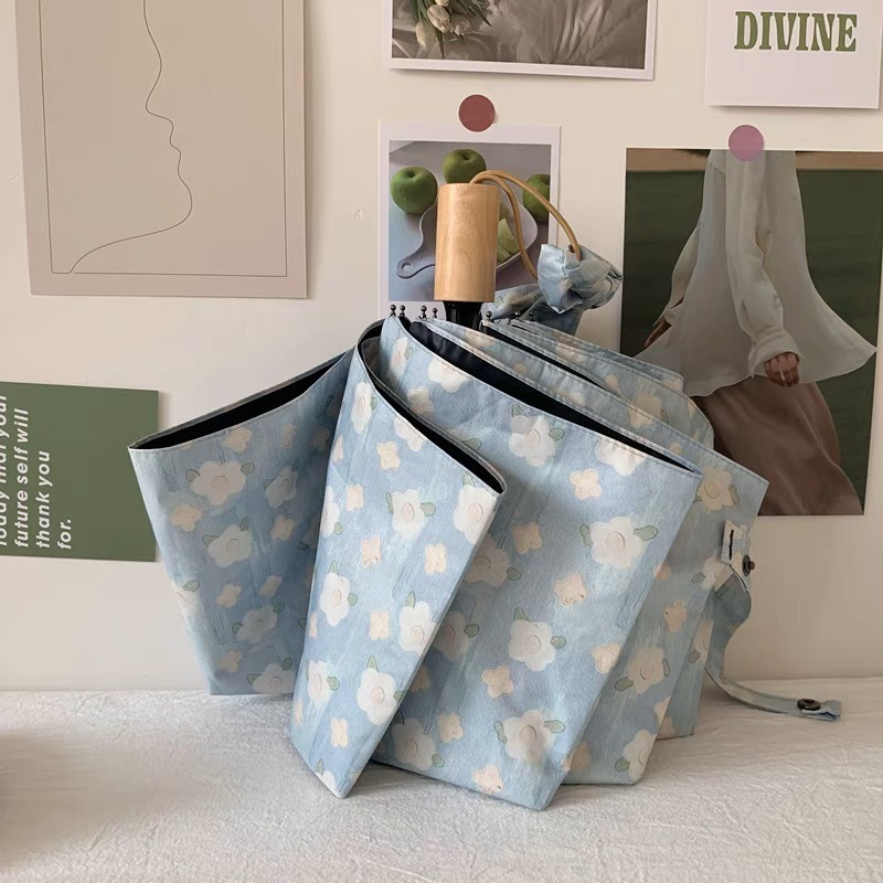 프렌치 인스 꽃무늬 완전 자동 비 또는 빛 접이식 자외선 차단 및 자외선 차단 소녀용 고급 우산스토어 가기