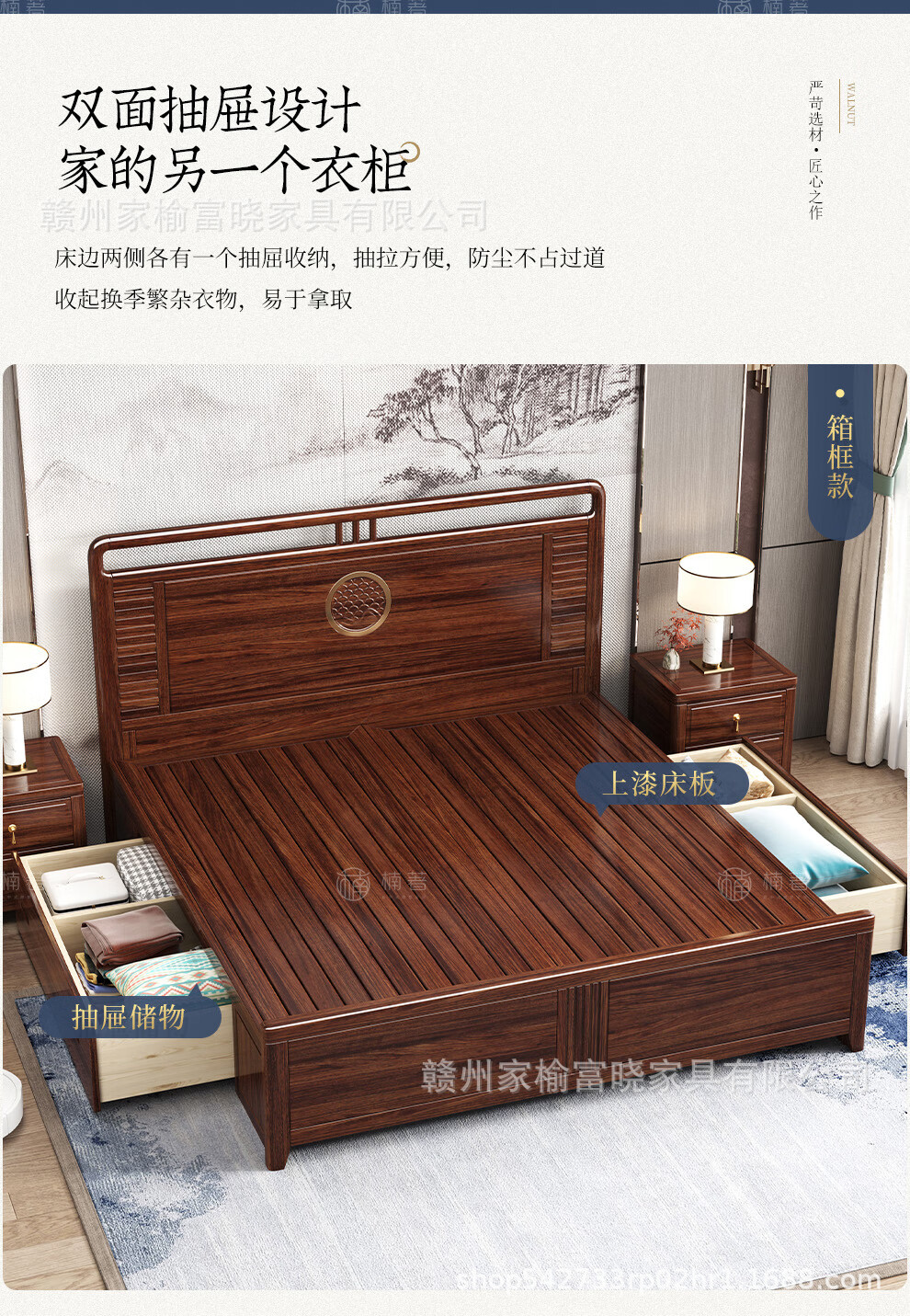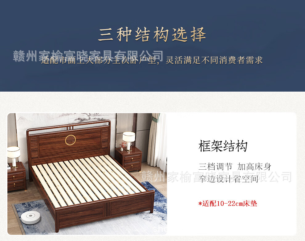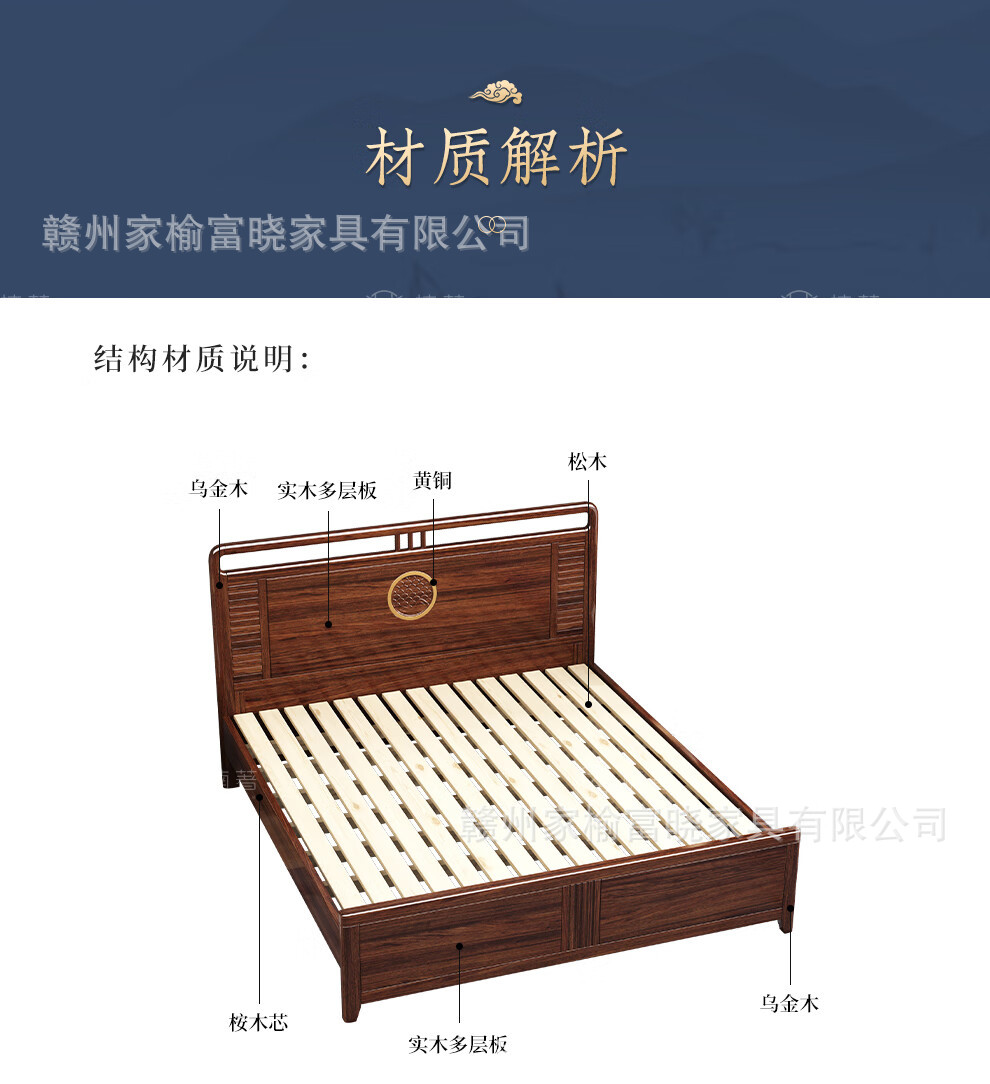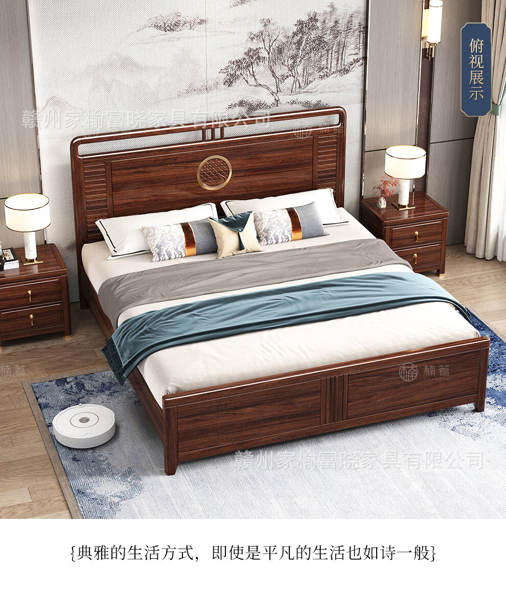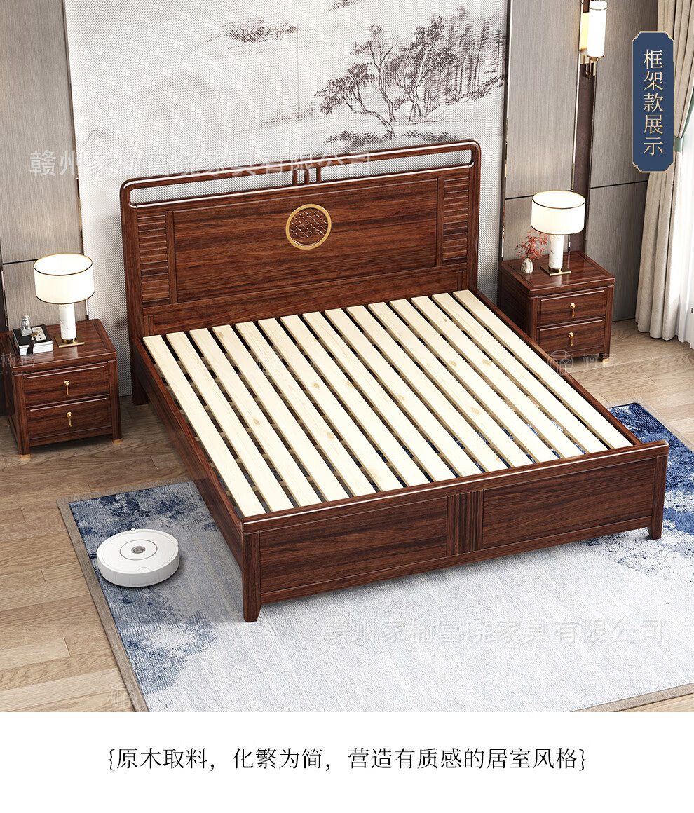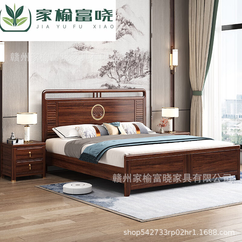 새로운 중국 스타일 검은 골드 나무 단단한 침대 1.5m 현대 간단한 1.8m 더블 높은 상자 저장 결혼식 침대스토어 가기