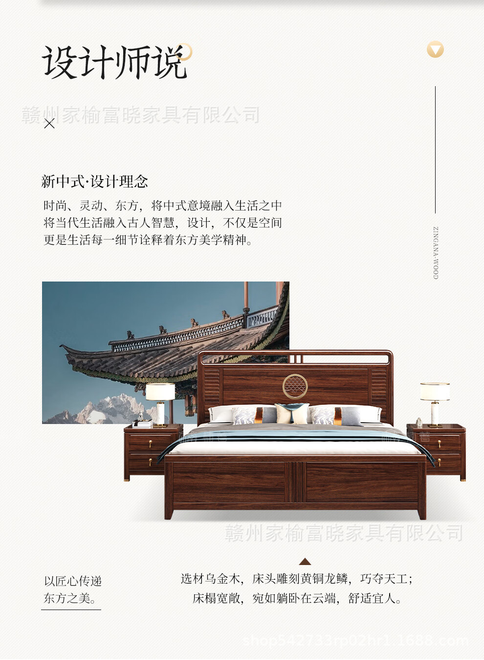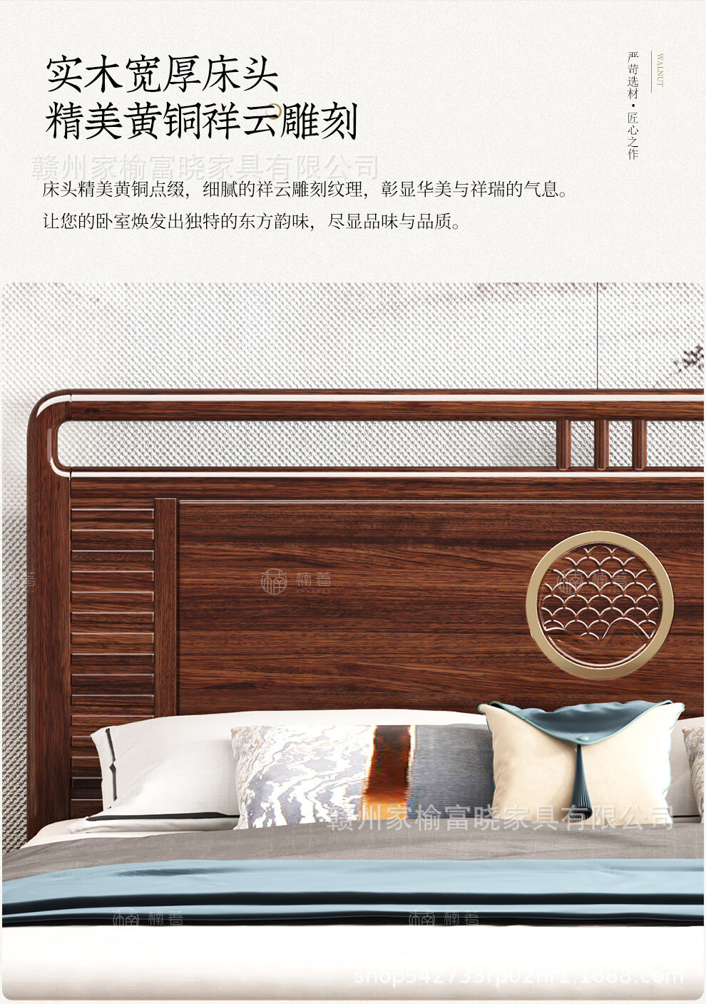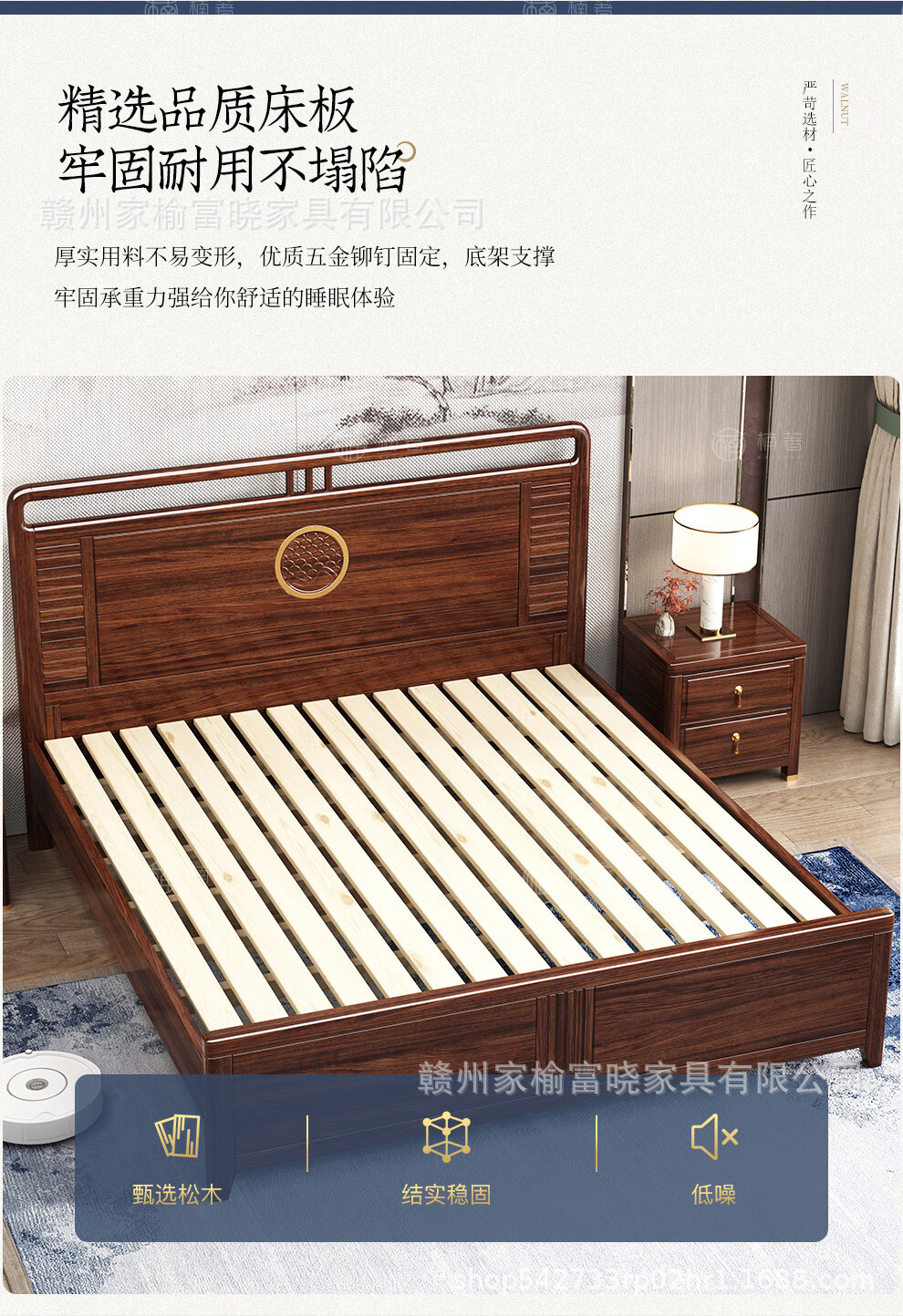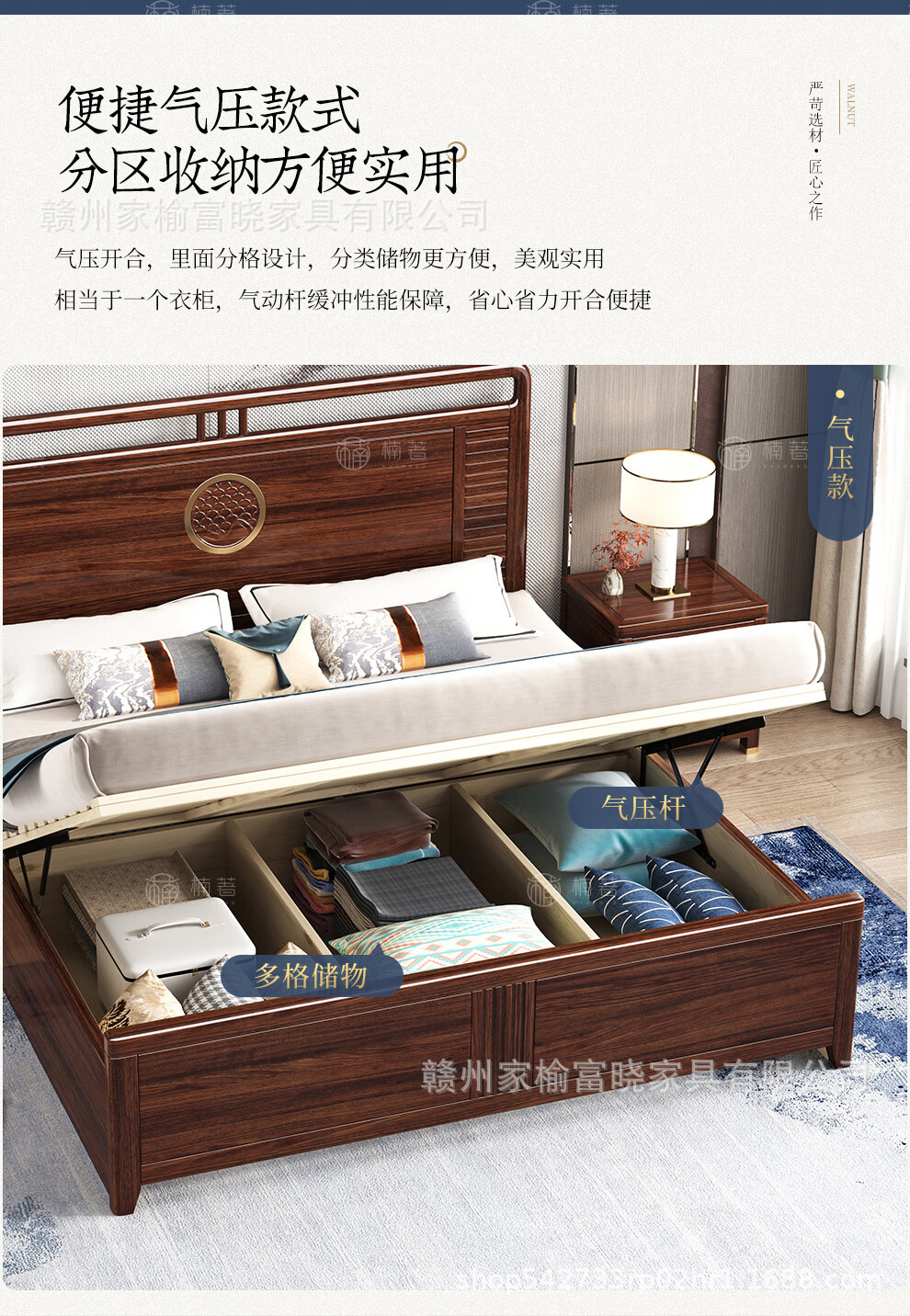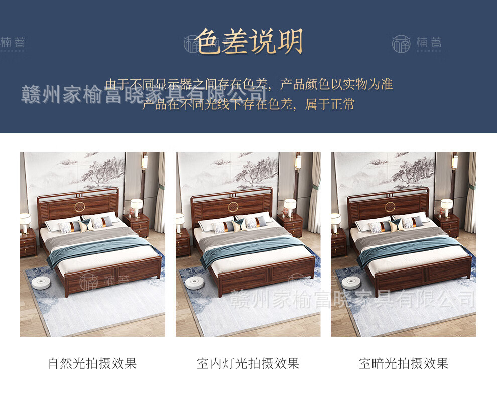 새로운 중국 스타일 검은 골드 나무 단단한 침대 1.5m 현대 간단한 1.8m 더블 높은 상자 저장 결혼식 침대스토어 가기