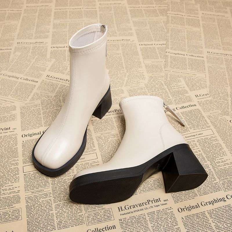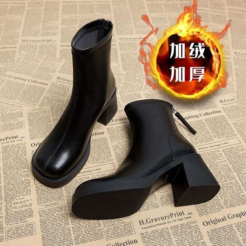 여성을위한 부드러운 가죽 하이힐 방수 플랫폼 마틴 부츠 가을, 겨울 2025 새로운 두꺼운 굽 작은 발목 부츠 여성용 하이 엔드 부츠스토어 가기