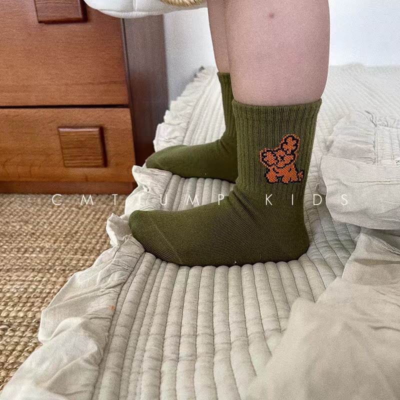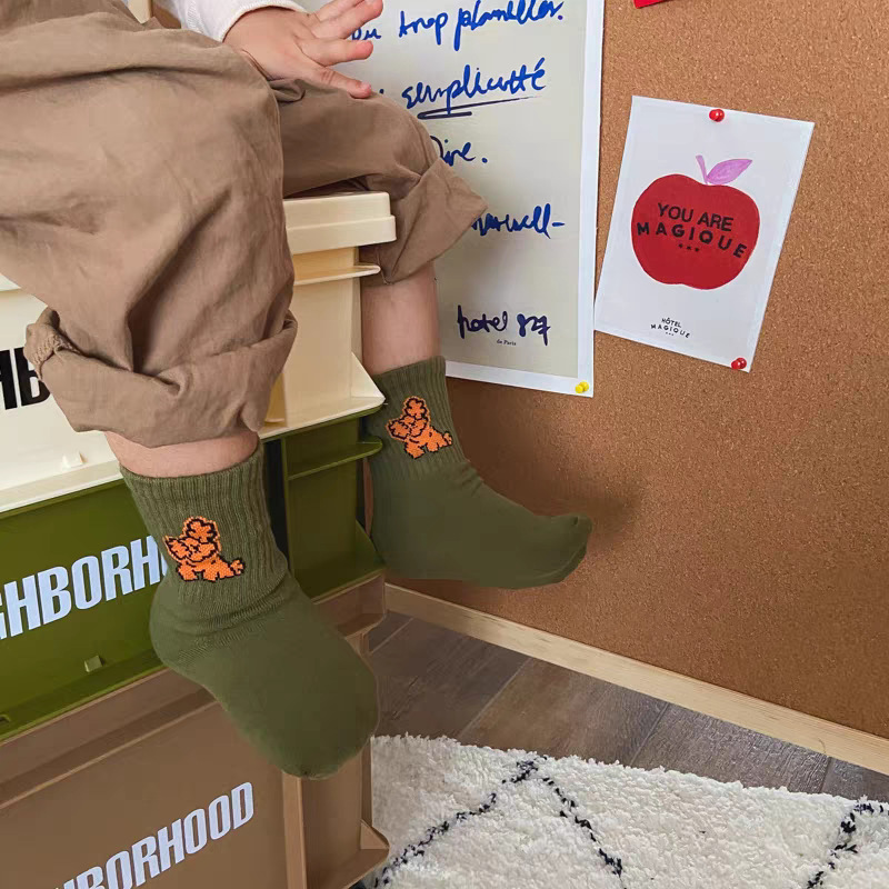 한국식 땀 흡수 면 어린이 복고풍 만화 순면 종아리 양말 소년 소녀용 짧은 면 양말 트렌디 인 스타일 탈취제스토어 가기