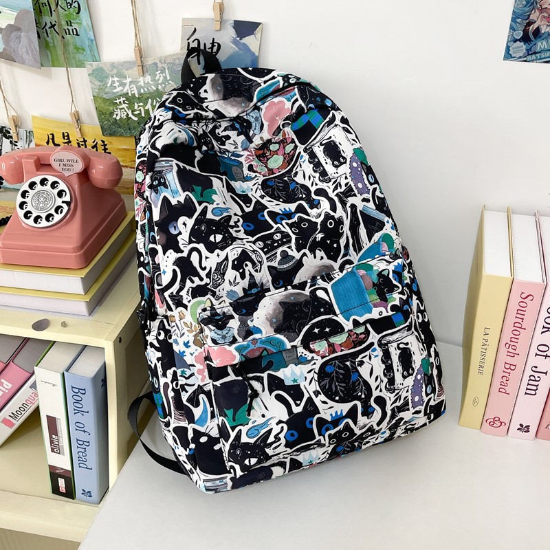 새로운 고급 일본식 틈새 맞춤형 낙서 만화 남성과 여성을 위한 트렌디하고 멋진 배낭 경량 대용량 배낭스토어 가기